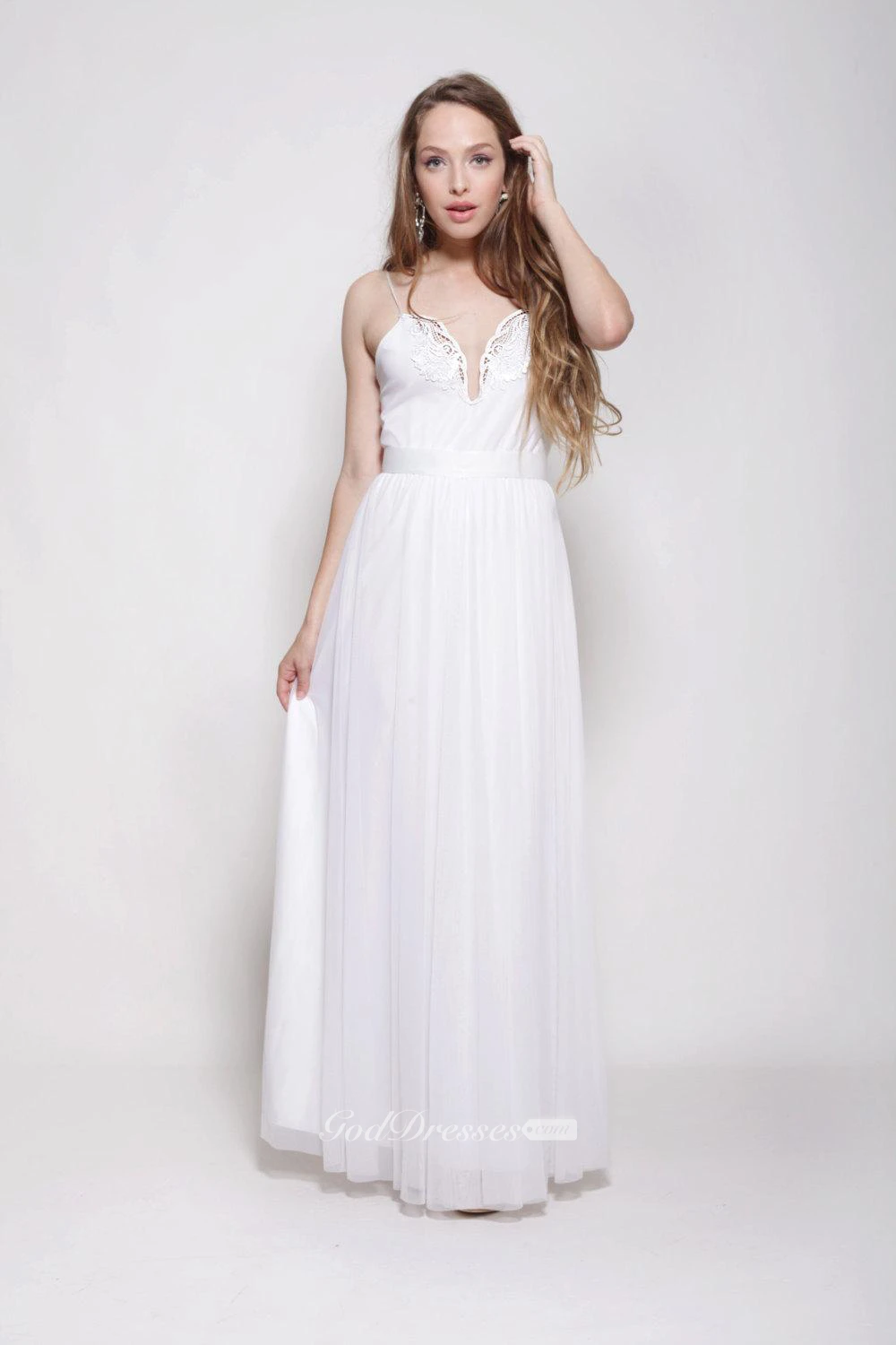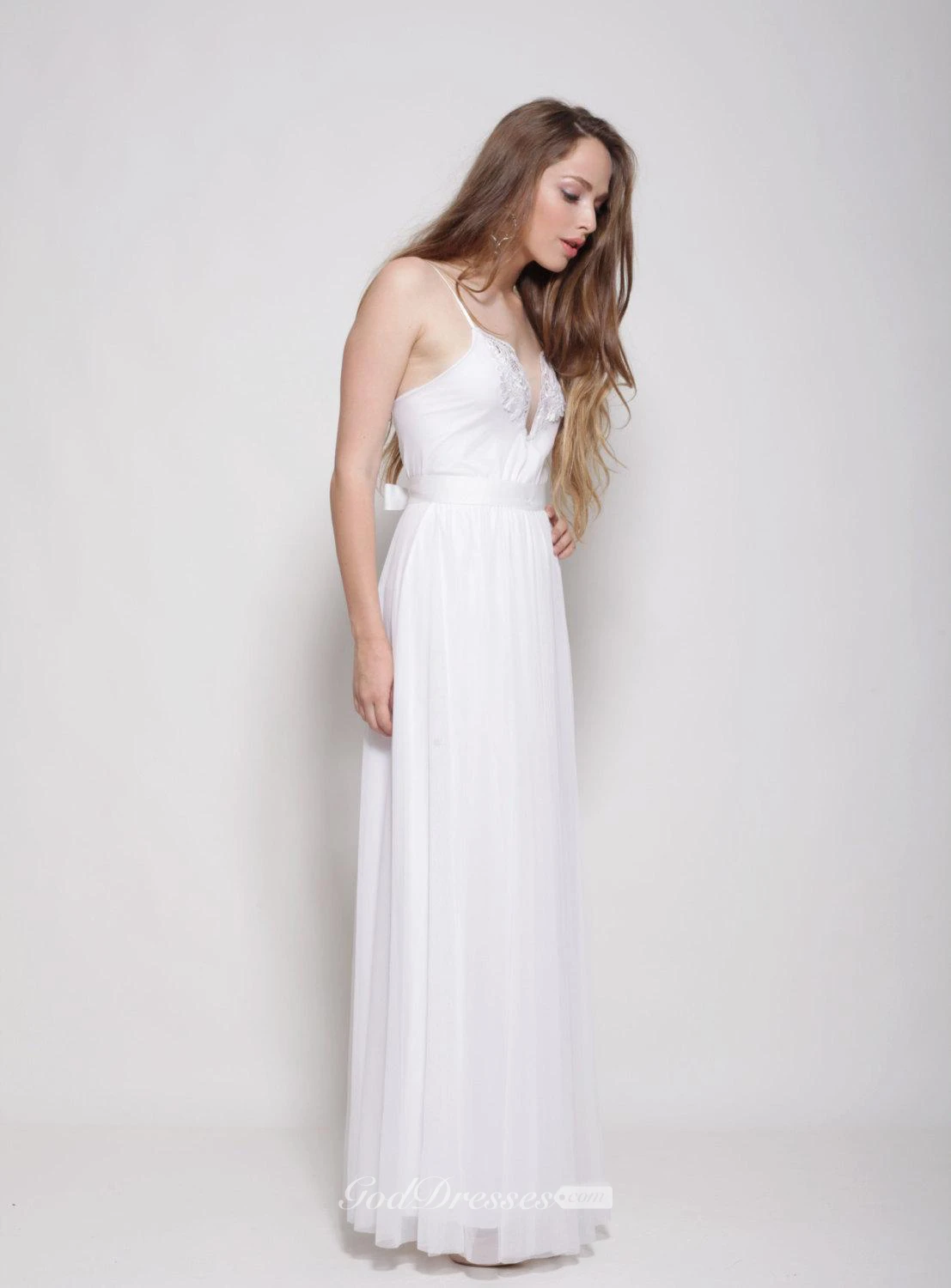 Pleated A-Line Chiffon Dress With Lace Trim and Spaghetti Straps