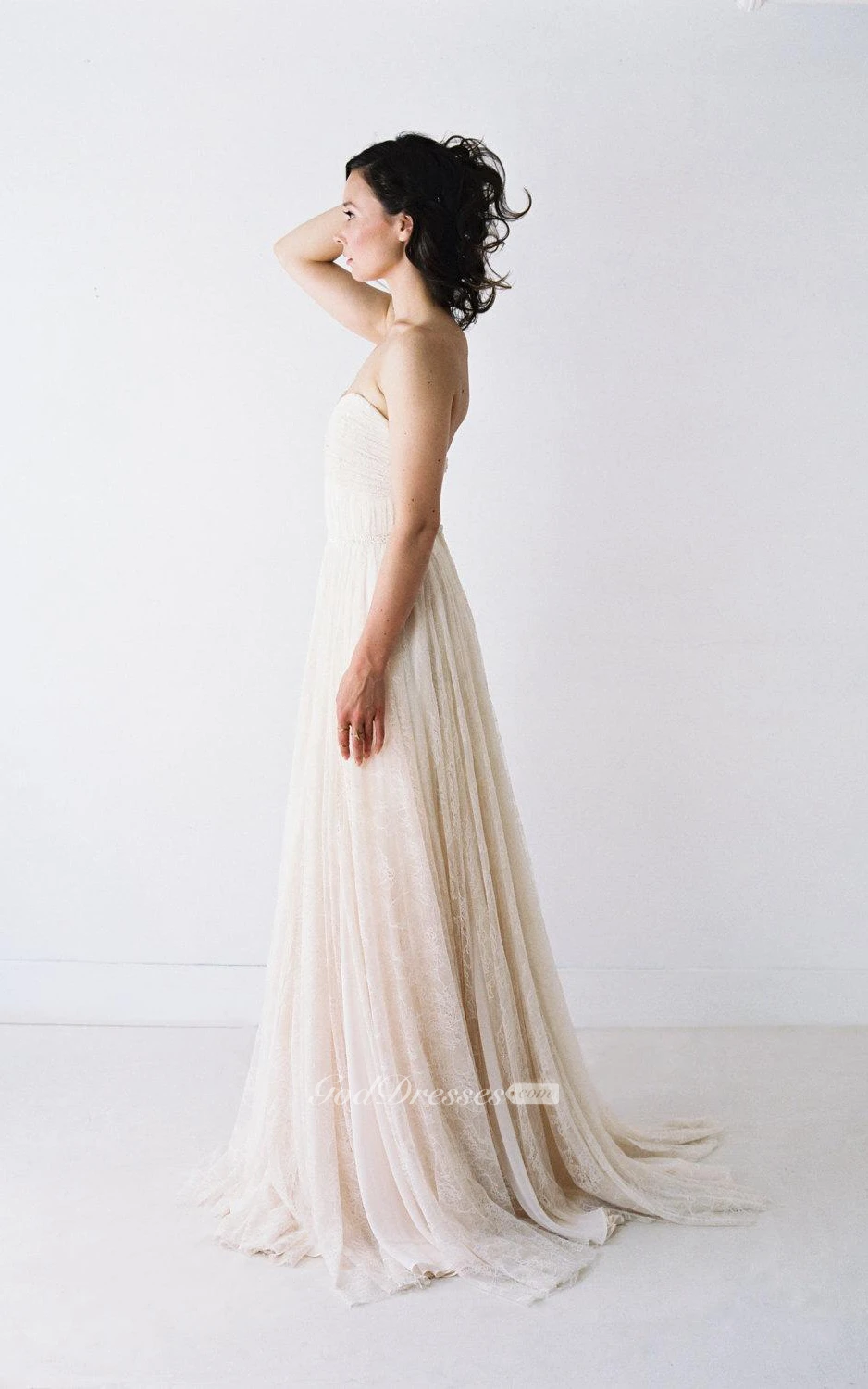 Pleated Lace Sweetheart A-Line Gown With Lace-Up Back