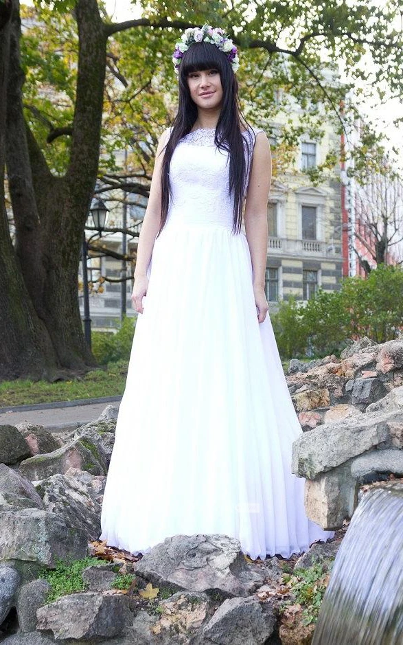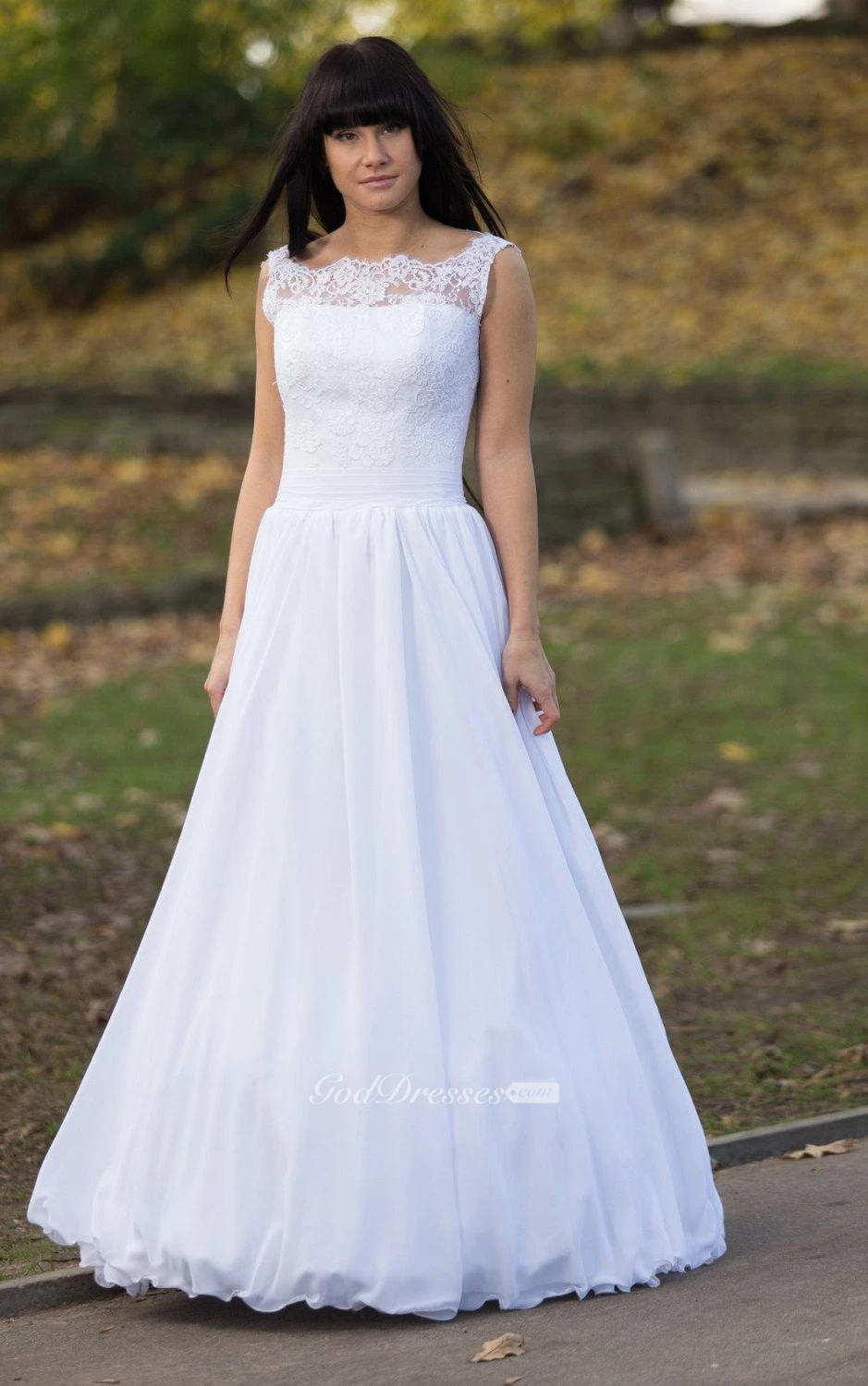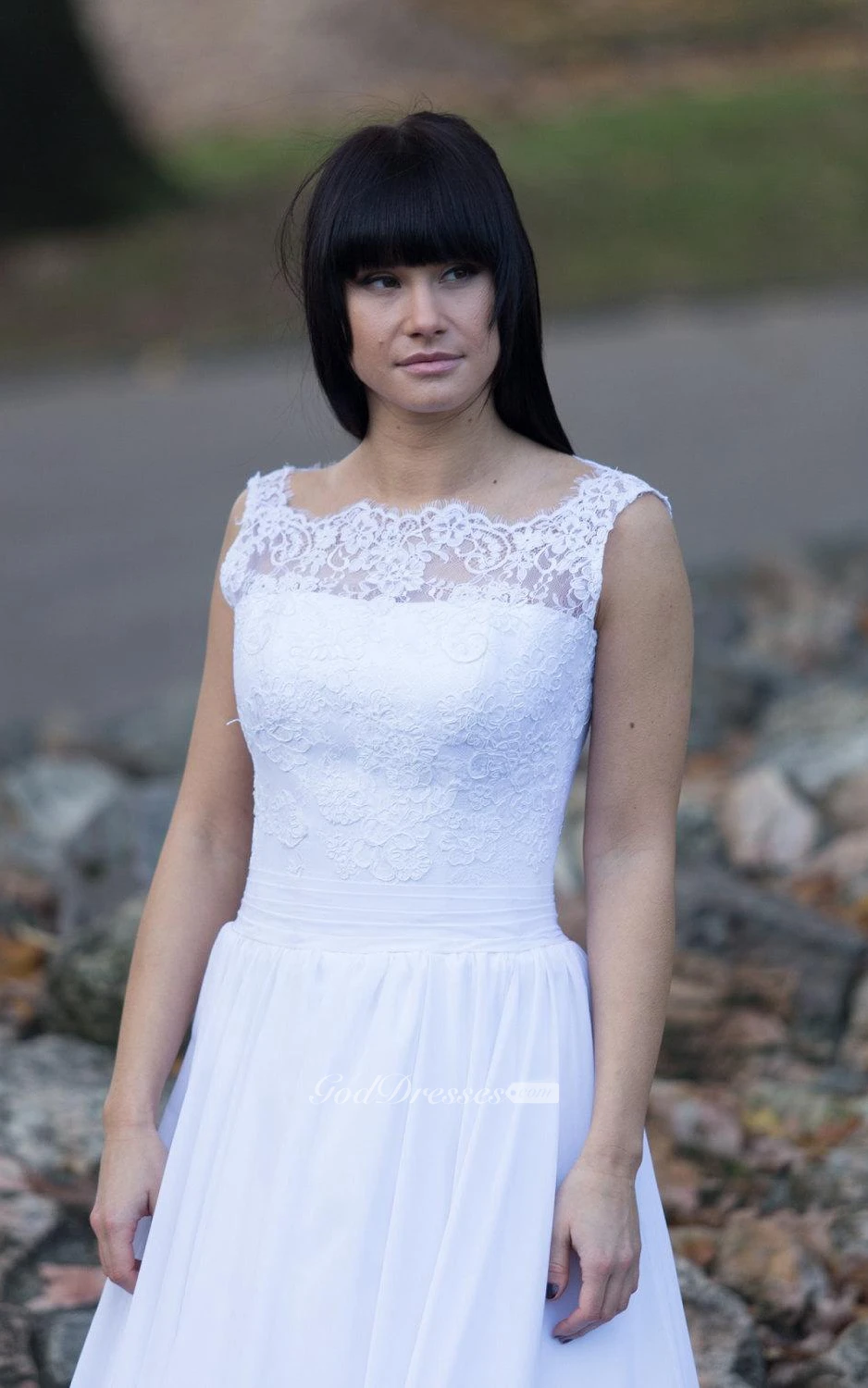 Pleated Sleeveless Chiffon A-Line Dress With Lace Bodice