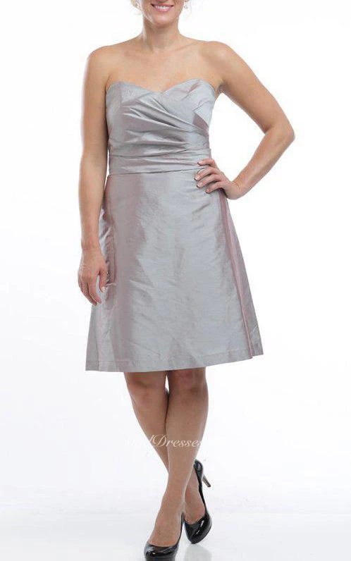 Pleated Sweetheart A-line Satin Short Dress