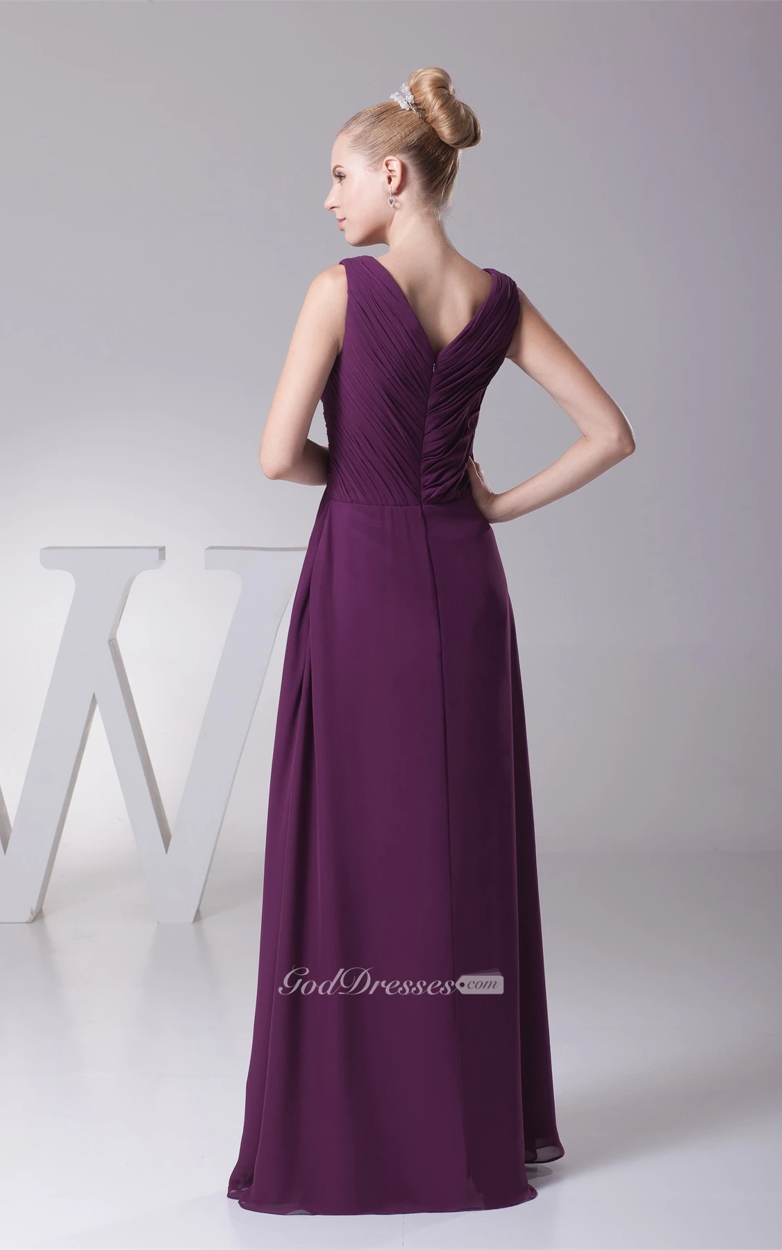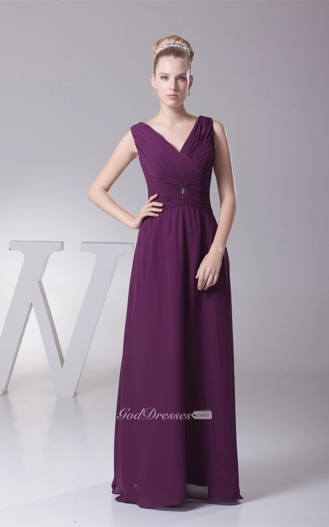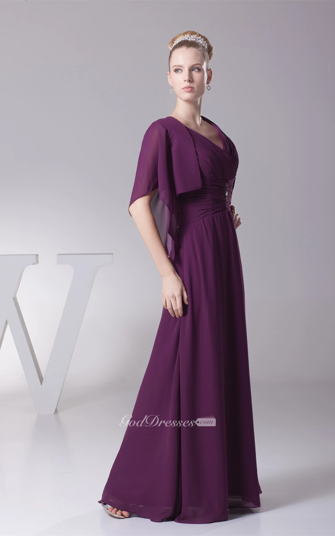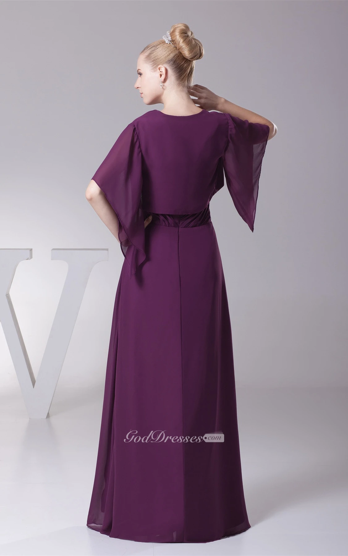 Plunged Chiffon Floor-Length Criss-Cross Bolero and Dress With Broach