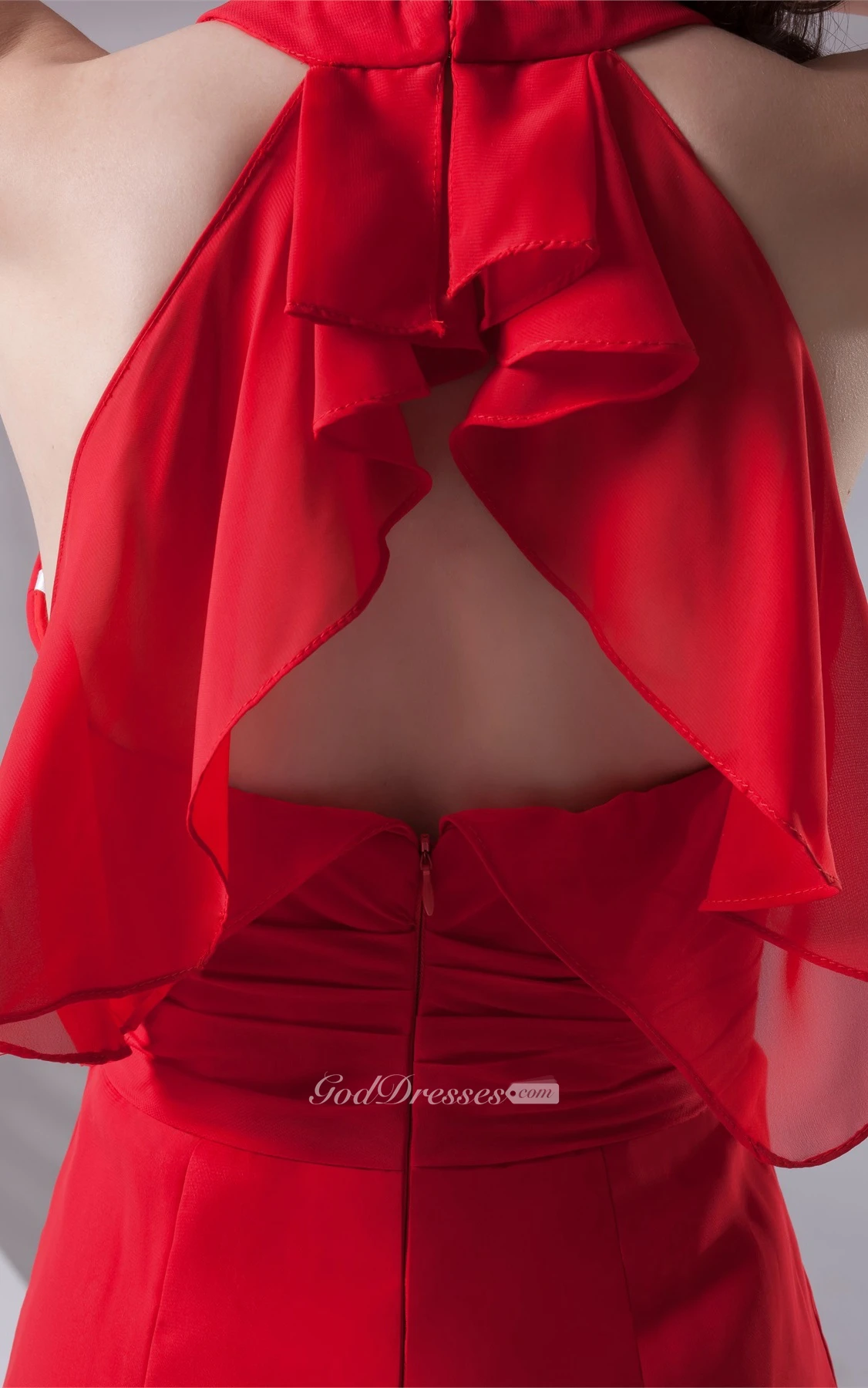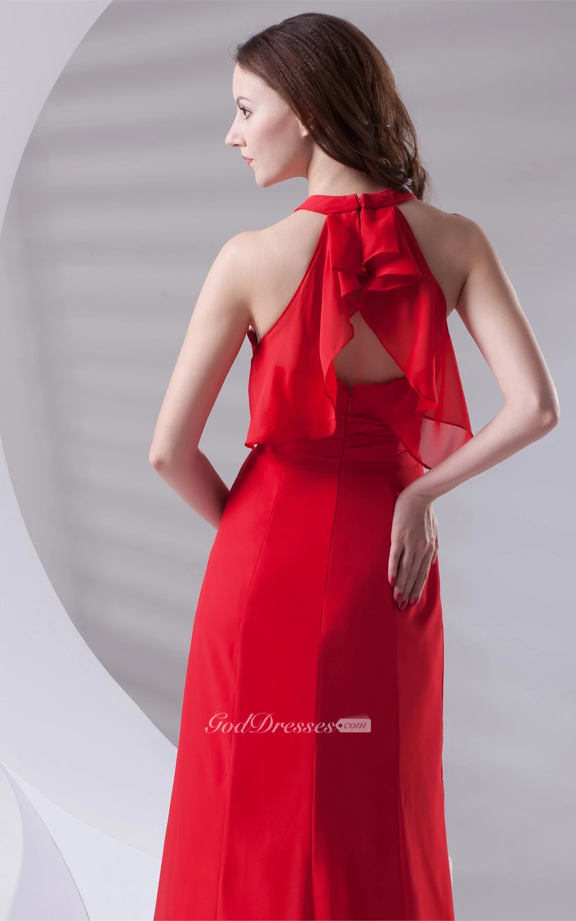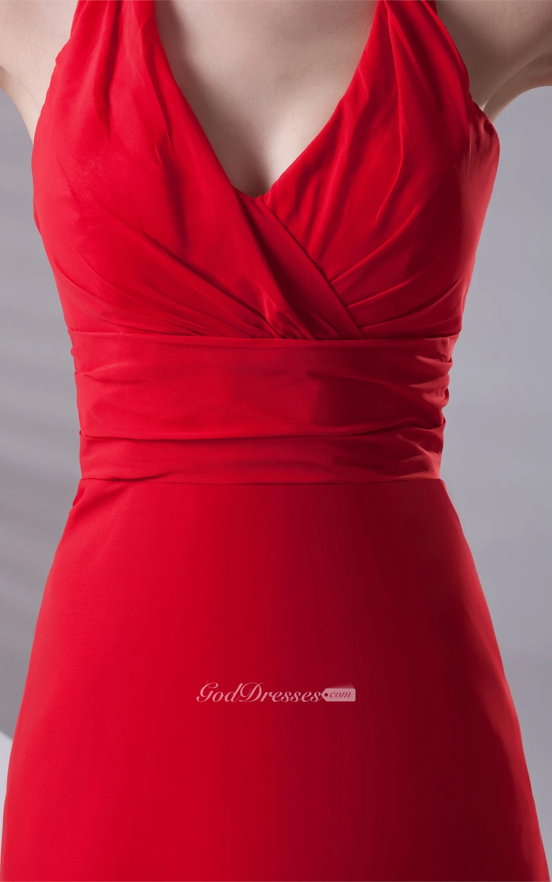 Plunged Floor-Length Chiffon Sweep Train and Dress With Ruching