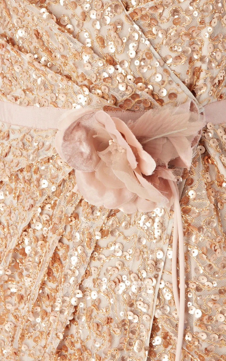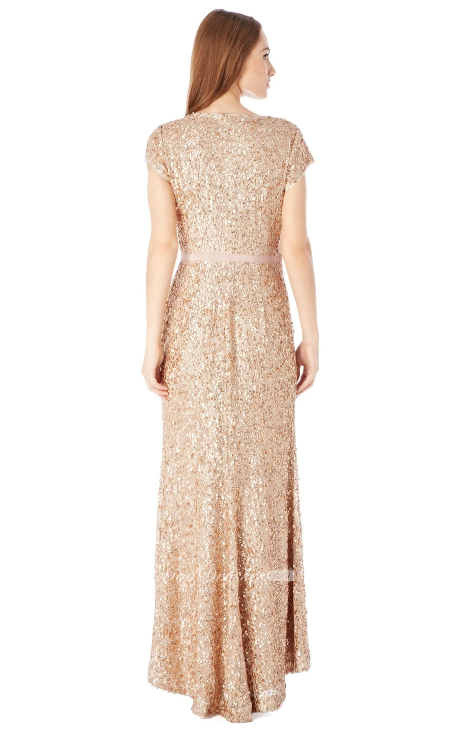 Plunged Front-Split Short Sleeve Dress With Sequins
