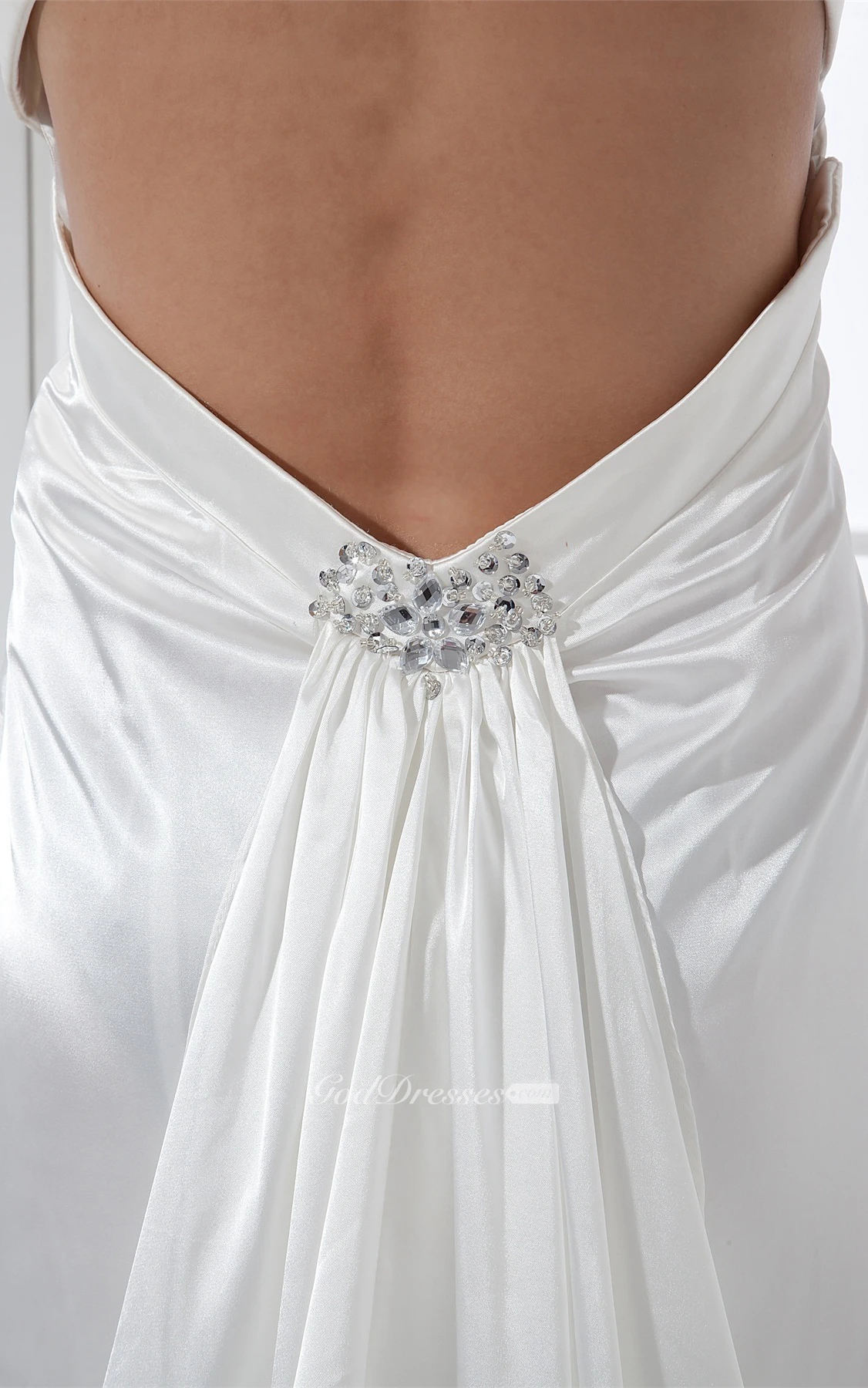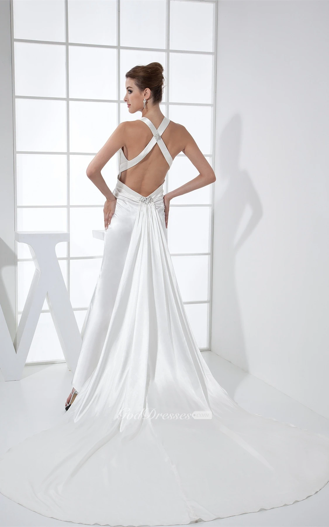 Plunged Satin Maxi Haltered Court Train and Dress With Beading