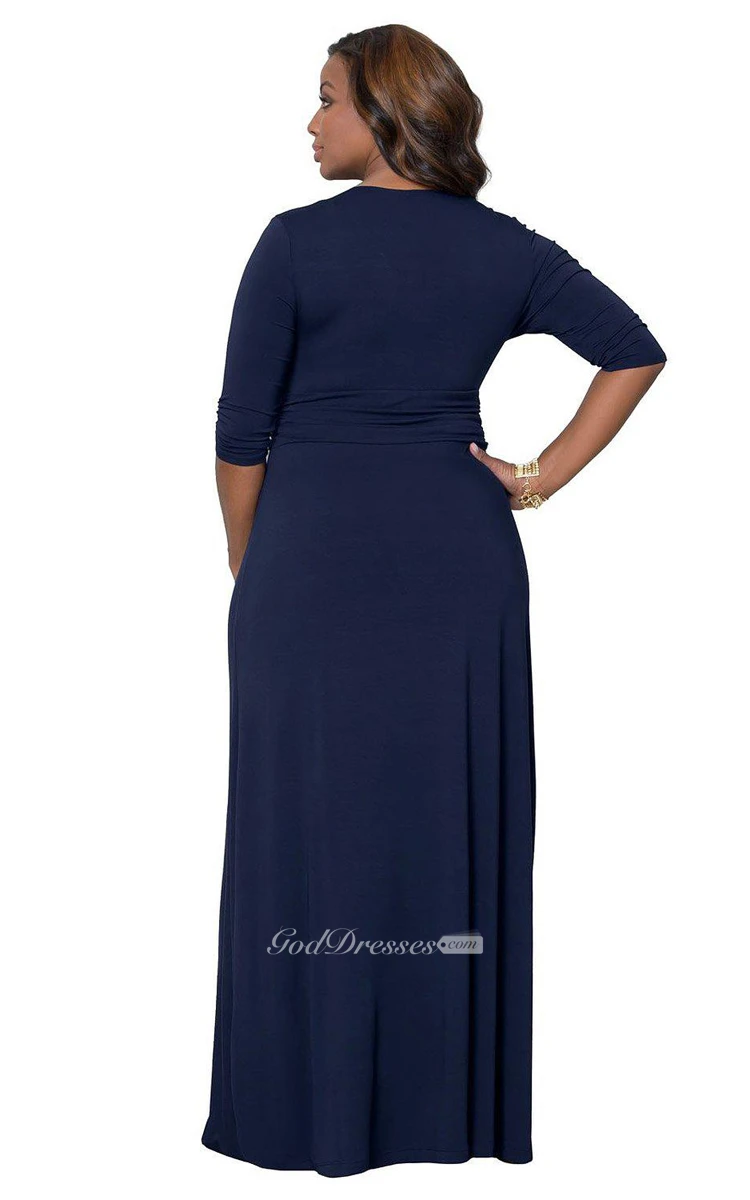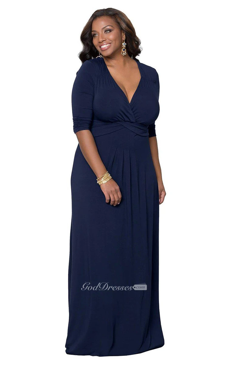 Plunging Neckline Long Jersey Dress With Long Sleeves