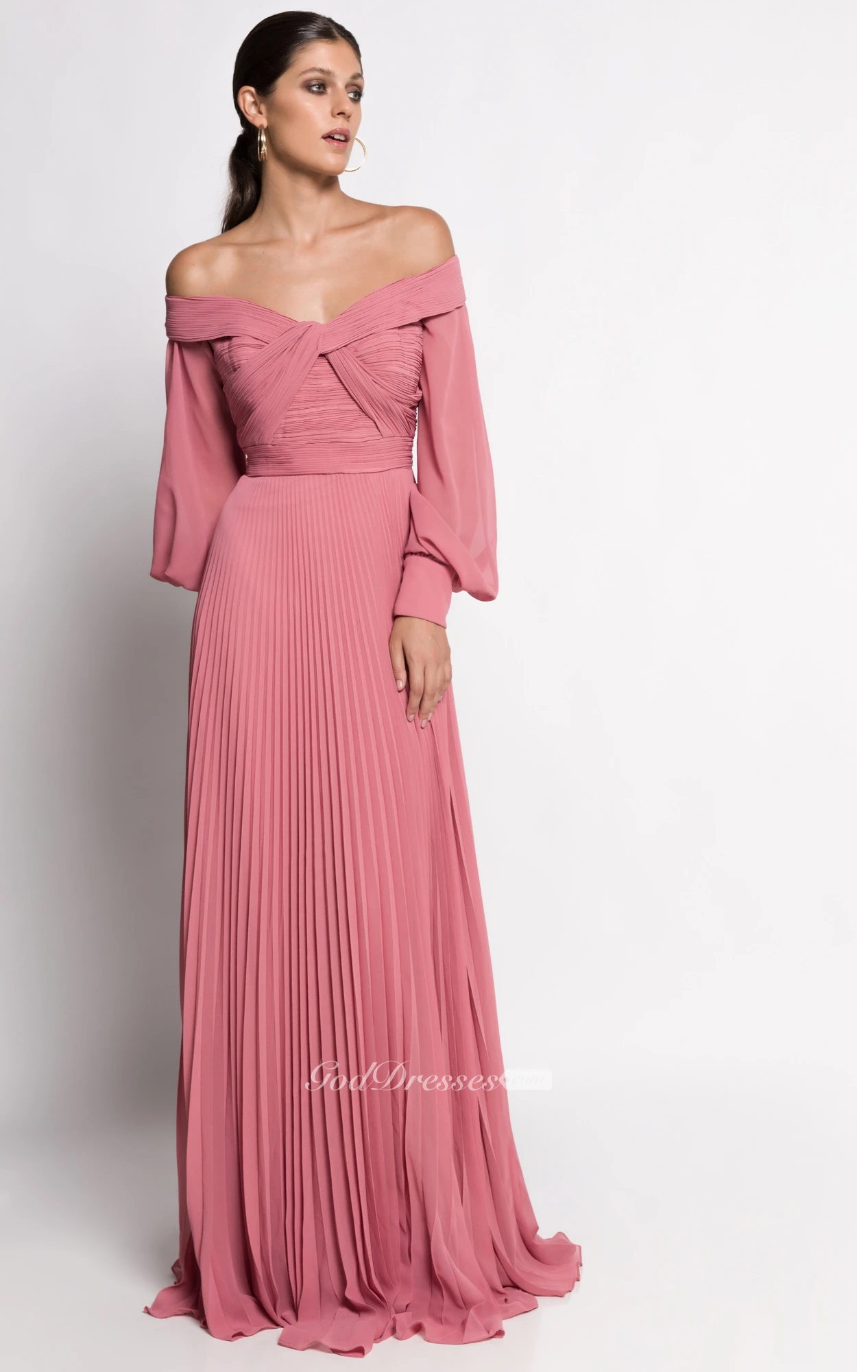 Poet Long Sleeved A Line Chiffon Prom Dress with Pleats