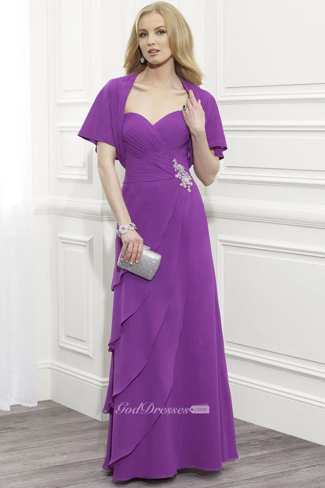 Poet Sleeve Sweetheart Criss-Cross Chiffon Mother Of The Bride Dress