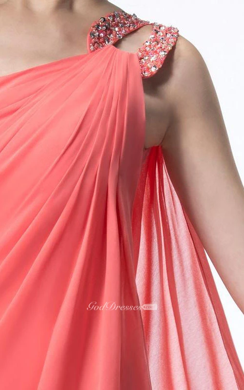 Pretty One Shoulder Beading Chiffon Floor Length Prom Dress