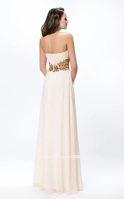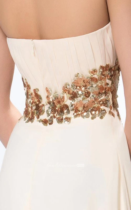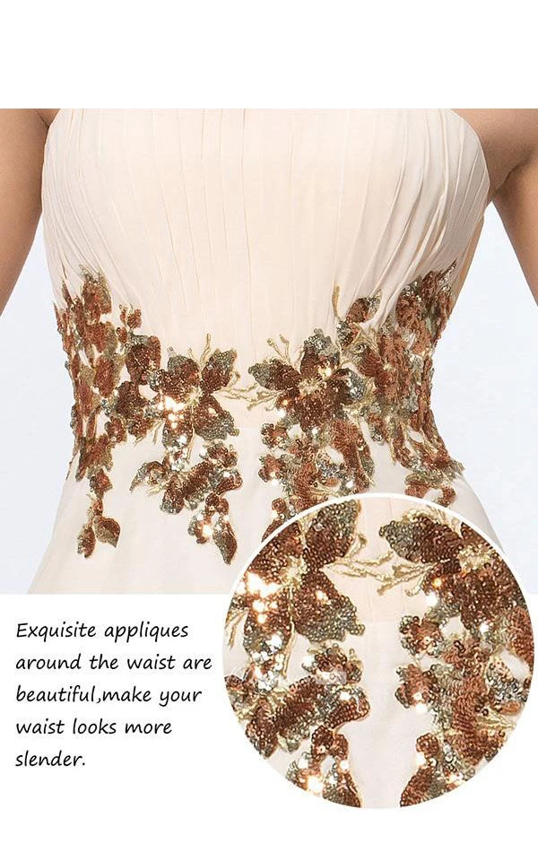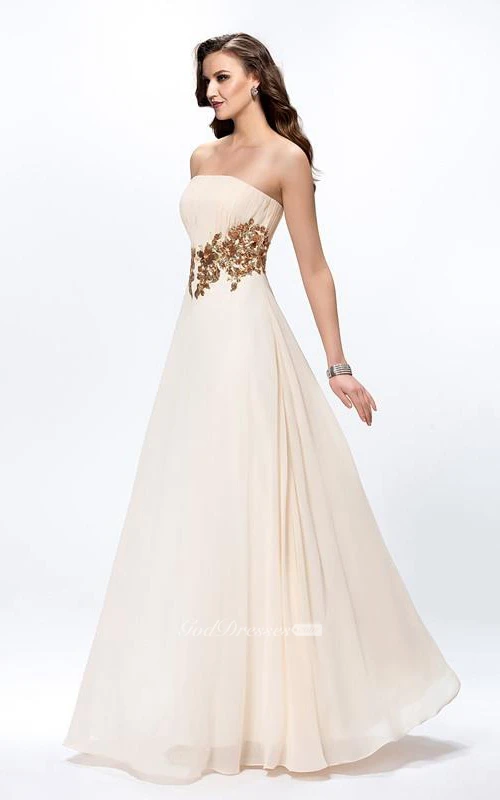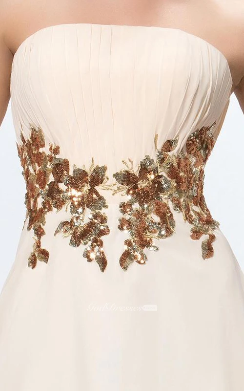 Pretty Pleats Appliques A-Line Zipper-up Floor-Length Prom Dress