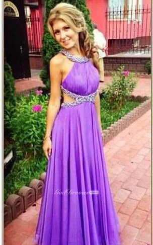 Purple A-Line Open Back Prom Gowns Criss-Cross Evening Dresses With Beadings