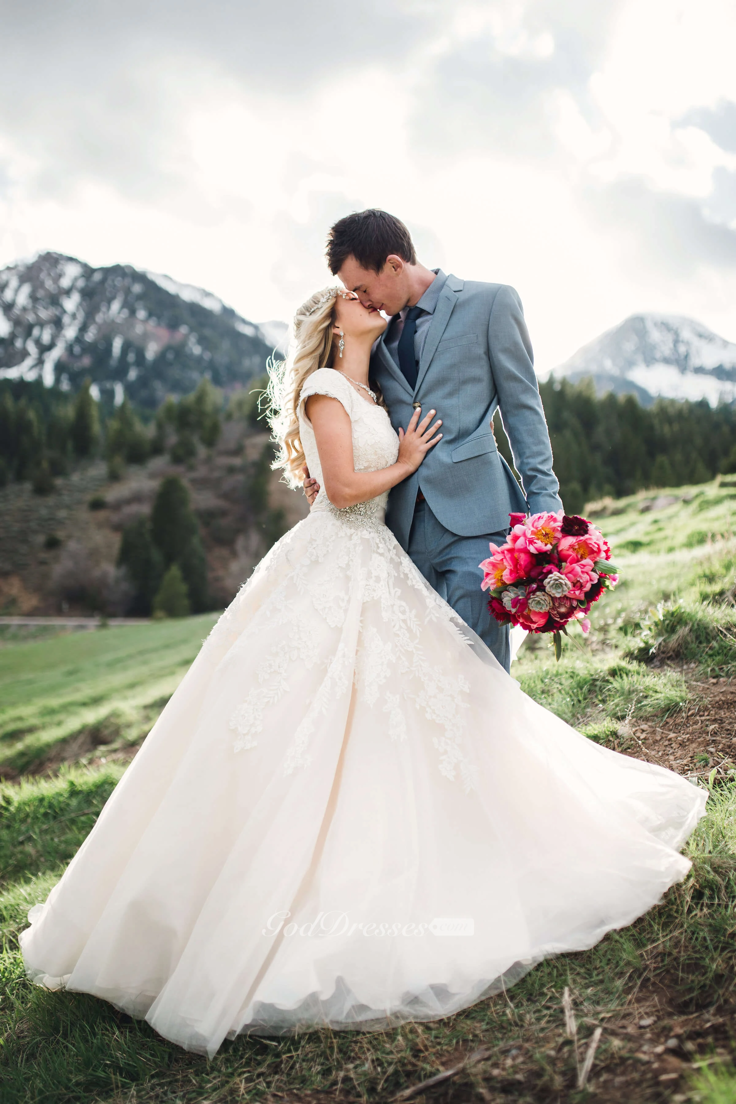 My wife bought this for our wedding day it was expected to be long because she is short but when i saw her tears ran down my face she looked beautiful. thank you.