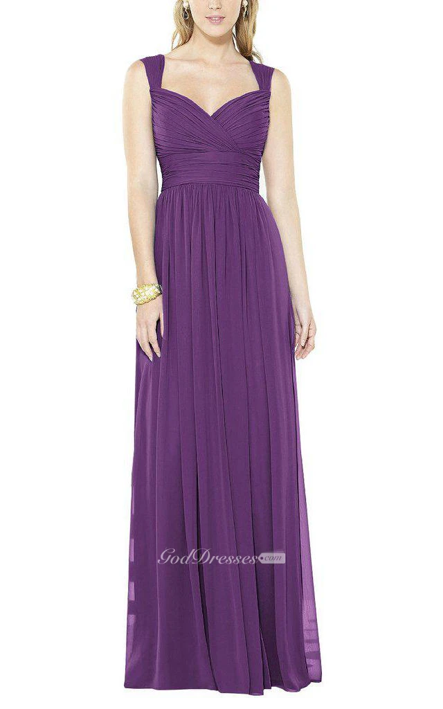 Queen Anne Long Chiffon Bridesmaid Dress with Ruching