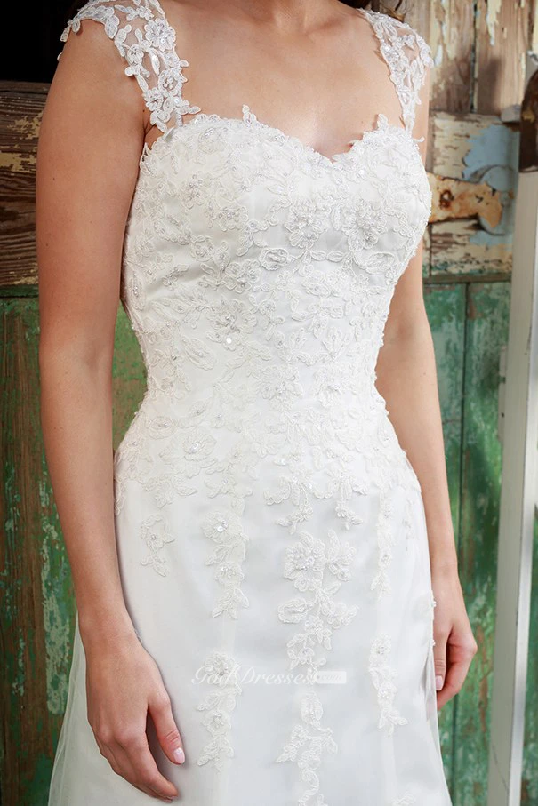 Queen-Anne Maxi Appliqued Lace Wedding Dress