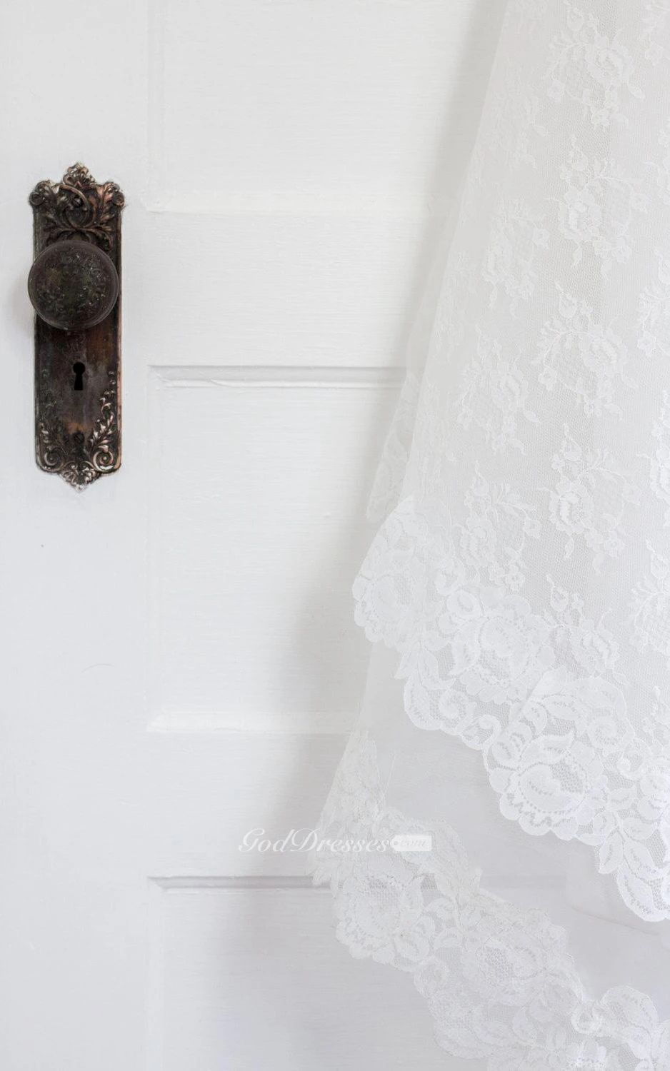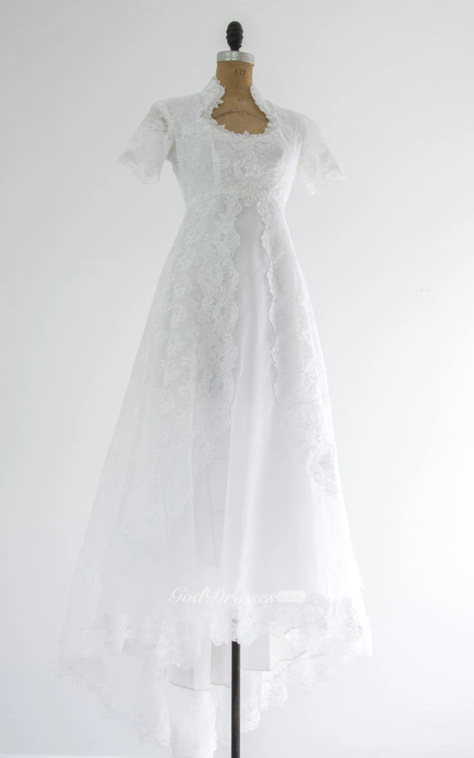 Queen Anne Neckline Short Sleeve A-Line Lace Dress With Beadings