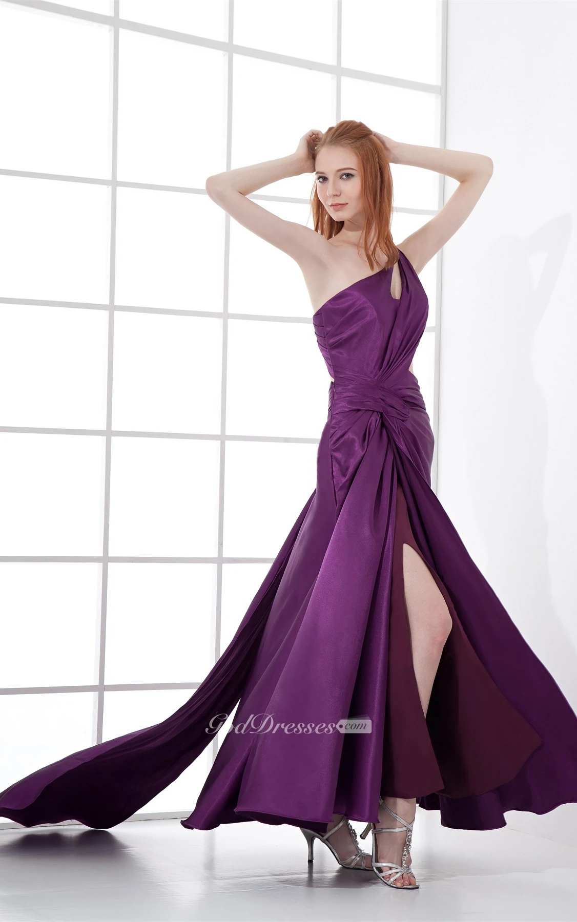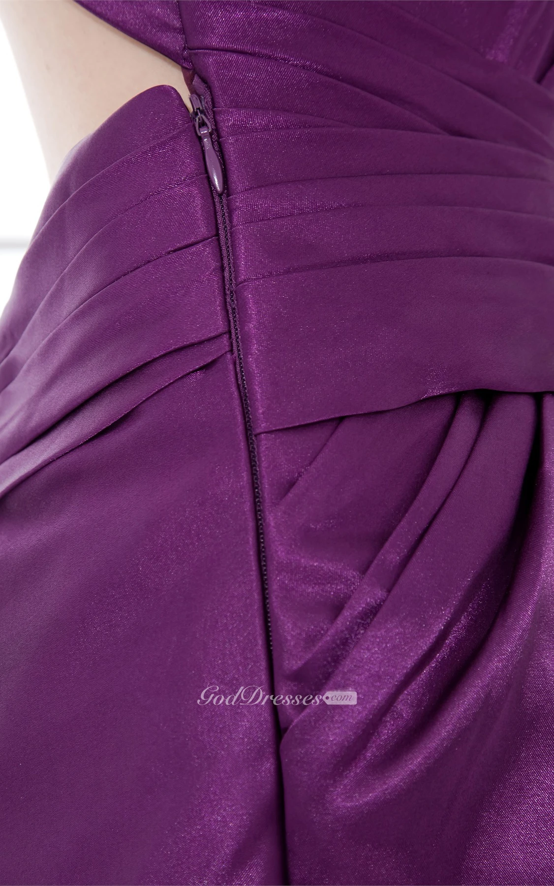 Refined One Shoulder Pleated Asymmetrical Sleeveless Special Occasion Dresses