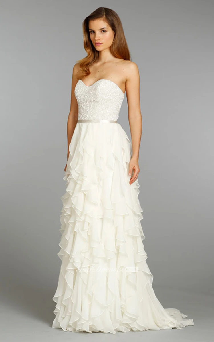 Refined Pearl Beaded Bodice Ruffle Dress With Satin Ribbon