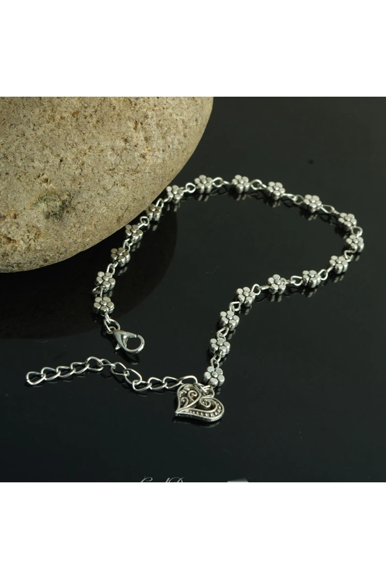 Retro Silver Heart-Shaped Anklet Jewelry 27Cm