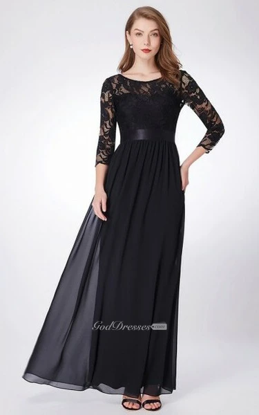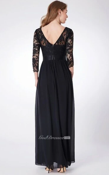 Romantic 3/4 Length Sleeve Floor-length Chiffon A Line Mother of the Bride Dress with Ruching