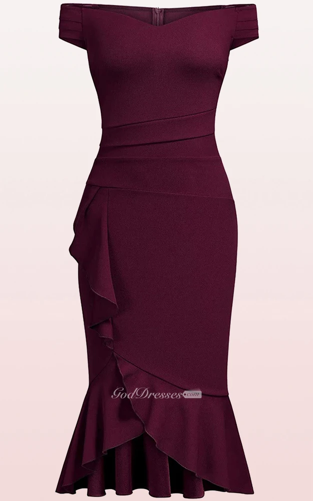 Romantic Satin Off-the-shoulder Sleeveless Bodycon Formal Dress With Ruffles