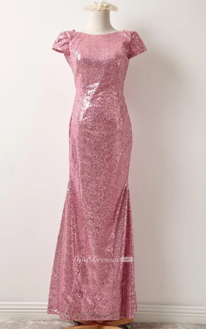 Rose Gold Sequin Prom Bridesmaid Short Sleeve Rose Gold Sequin Sexy Formal Elegant Evening Petit Bonheur Dress