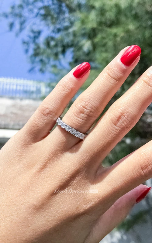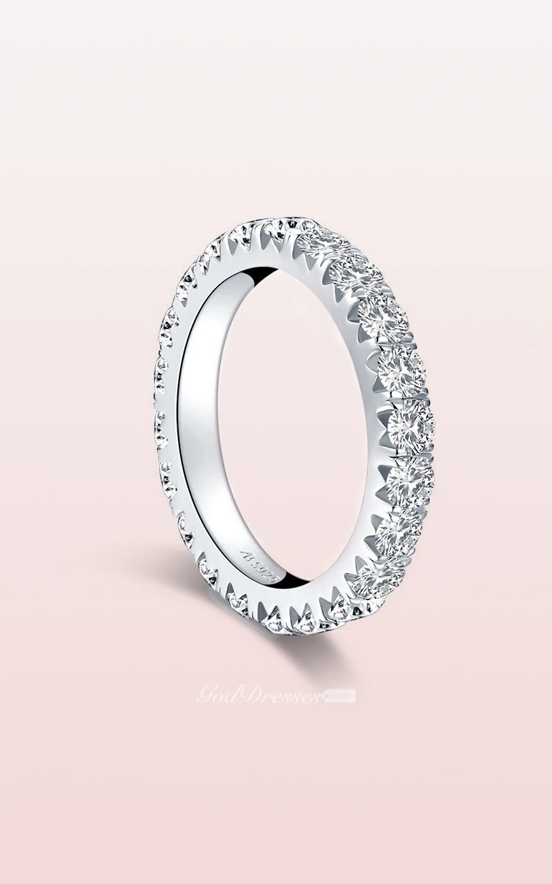 Round Cut Side Stones Rhinestone 925 Silver Wedding Rings