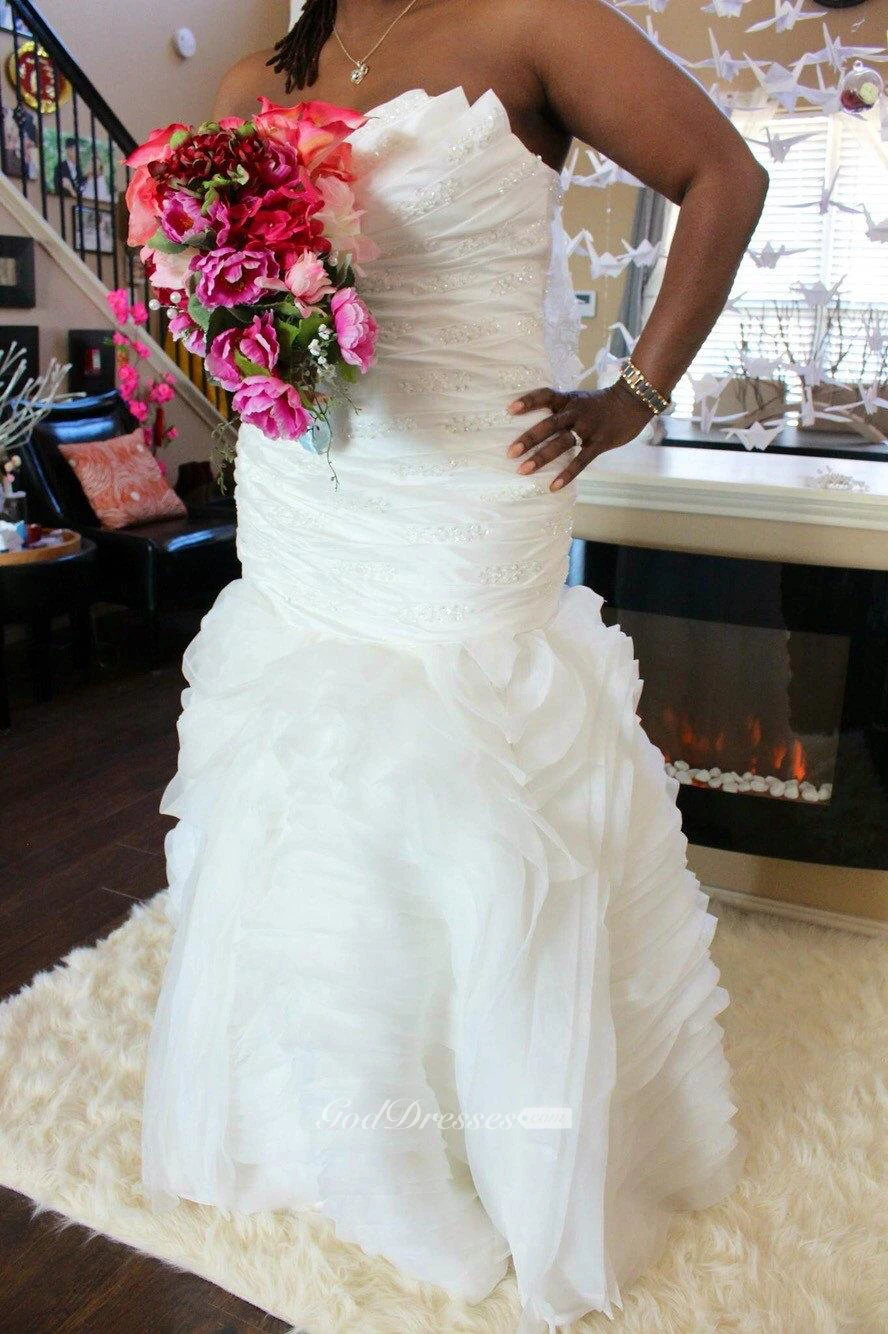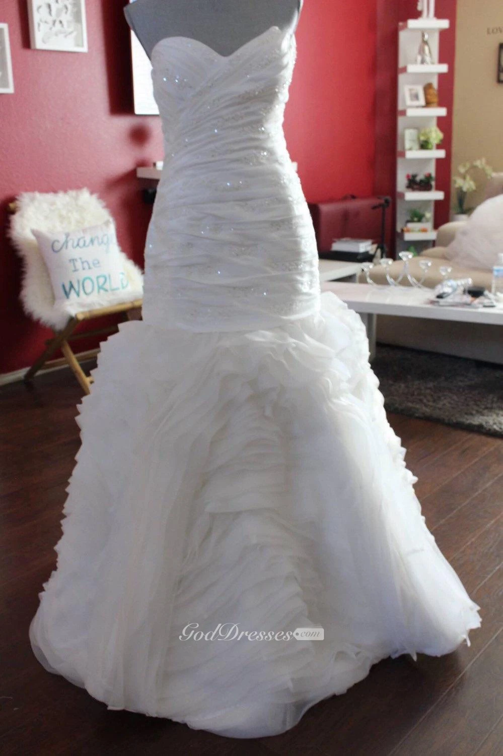 Ruched Fit and Flare Organza Dress With Beadings and Ruffles