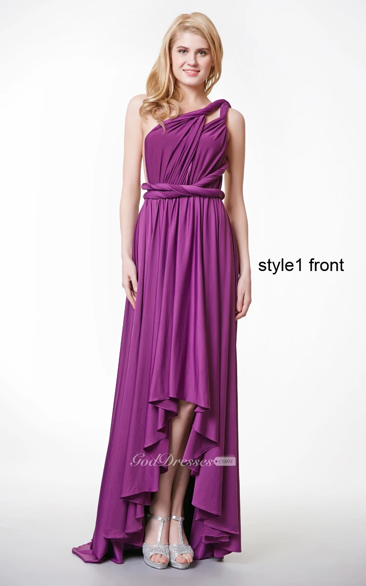 Ruched One Shoulder Pleated High Low Jersey Dress With Ruffles