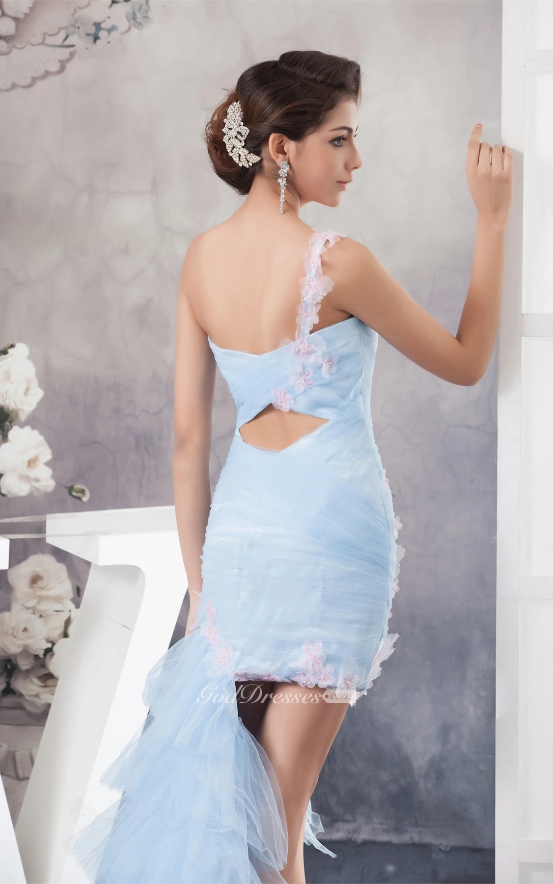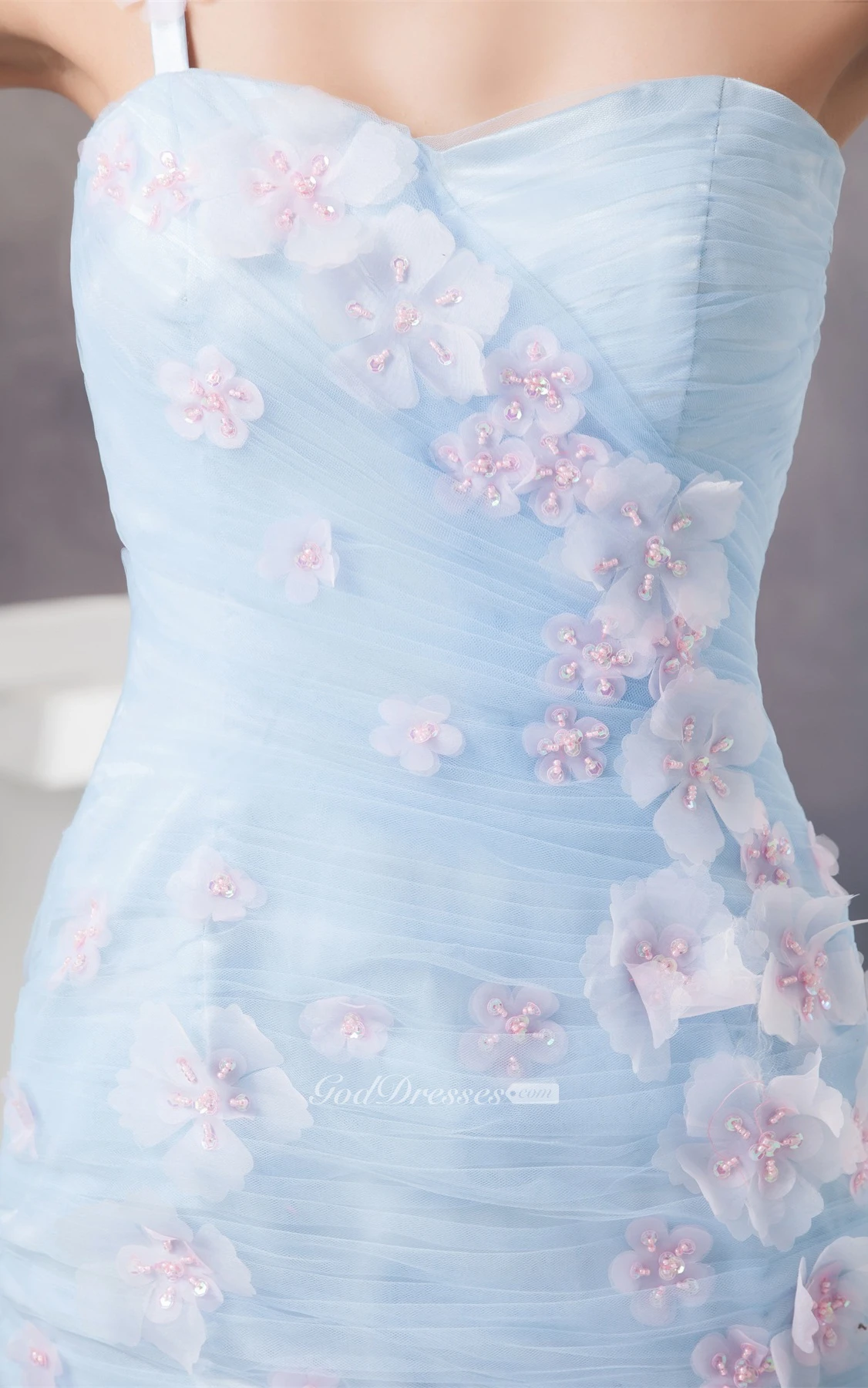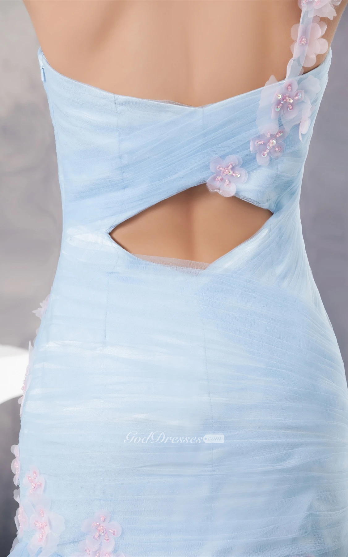 Ruched Short Pencil Keyhole Back and Dress With Flower