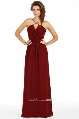 Ruched Spaghetti Chiffon Bridesmaid Dress With Low-V Back