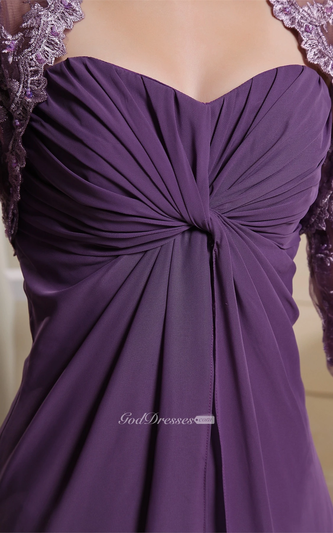 Ruched Sweetheart A-Line Maxi Dress With Detachable Scalloped Jacket