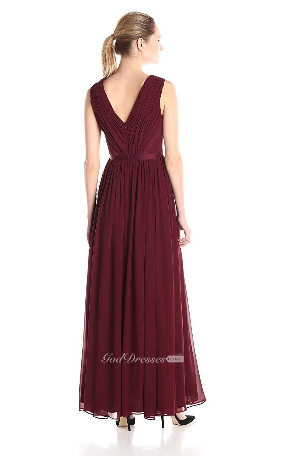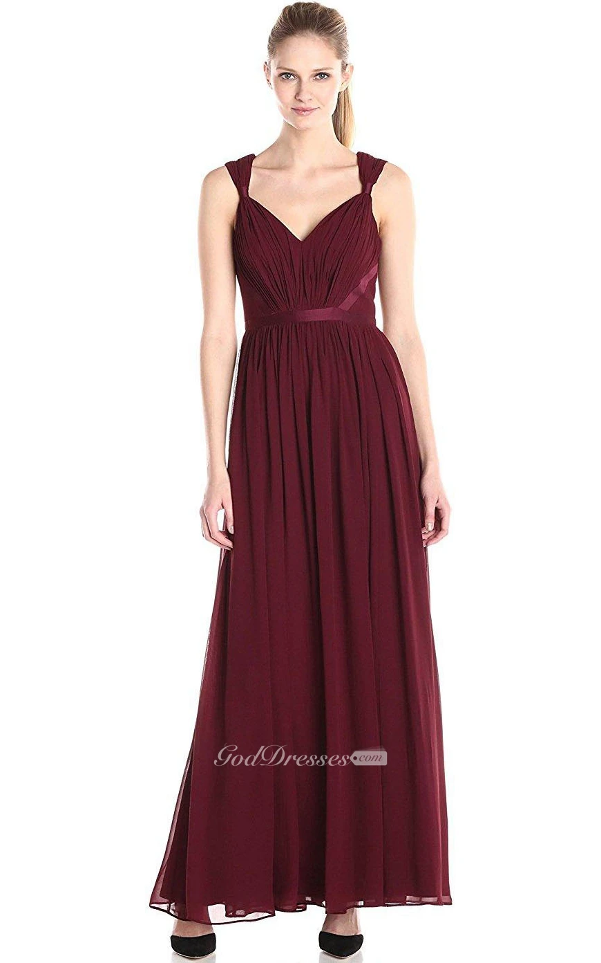 Ruching Zipper Low-v Back Straps Chiffon Dress