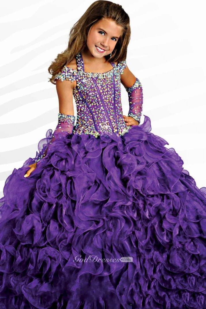 Ruffle Ball Gown Halter Corset Flower Girl Dress with Beading