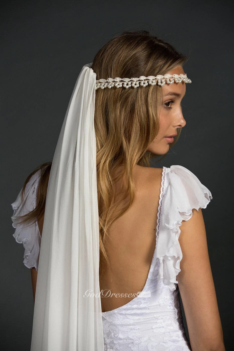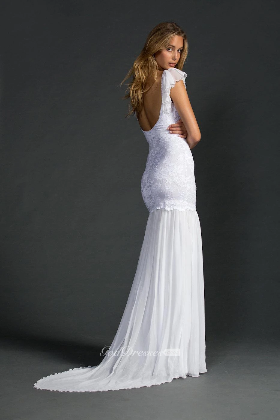 Ruffled Cap Sleeve V-Neck Mermaid Chiffon Dress With Low-V Back