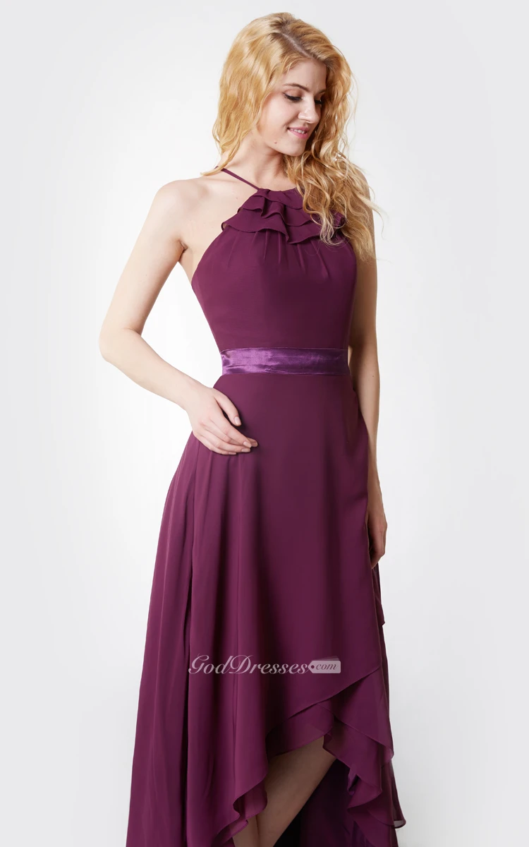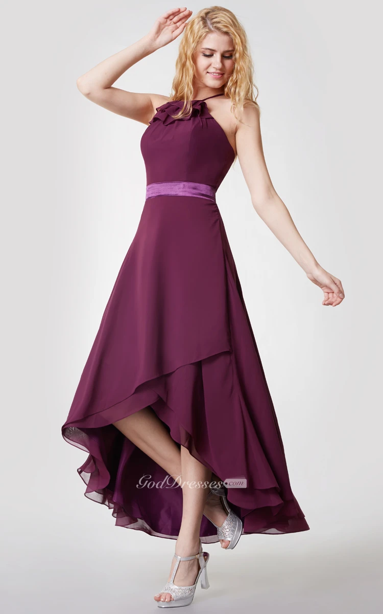 High-low skirt looks so new and unique. Tiered hemline with halter neckline and back straps make this dress stand out from other regular dresses. I am a fan of asymmetrical dresses and this one is a great choice. It looks so beautiful and suits any occasion.