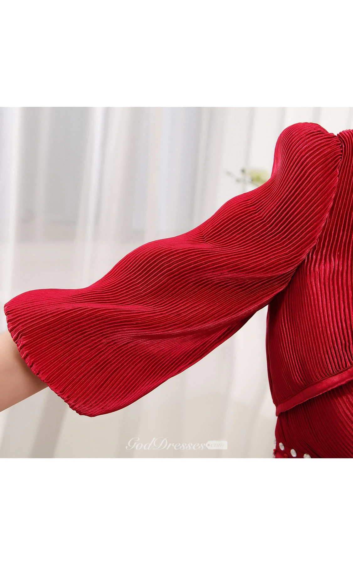 Ruffled Ruched Knee-Length Hem Bolero and Dress With Bead Waist