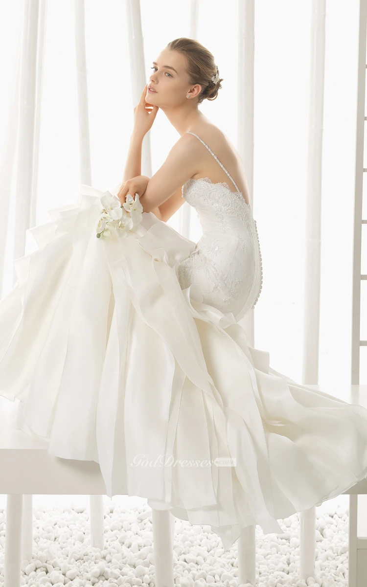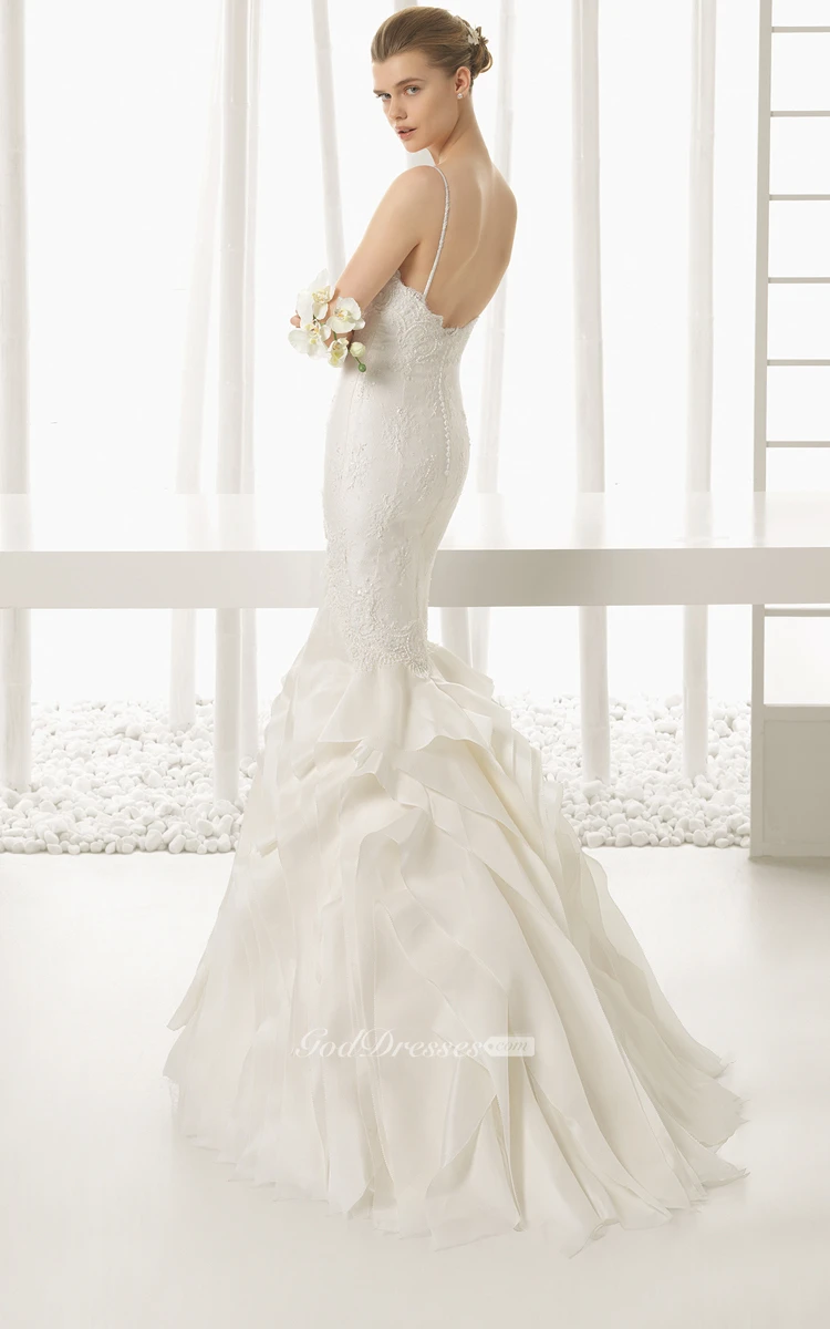 Ruffled Trumpet Gown With Spaghetti Straps And Embroidery