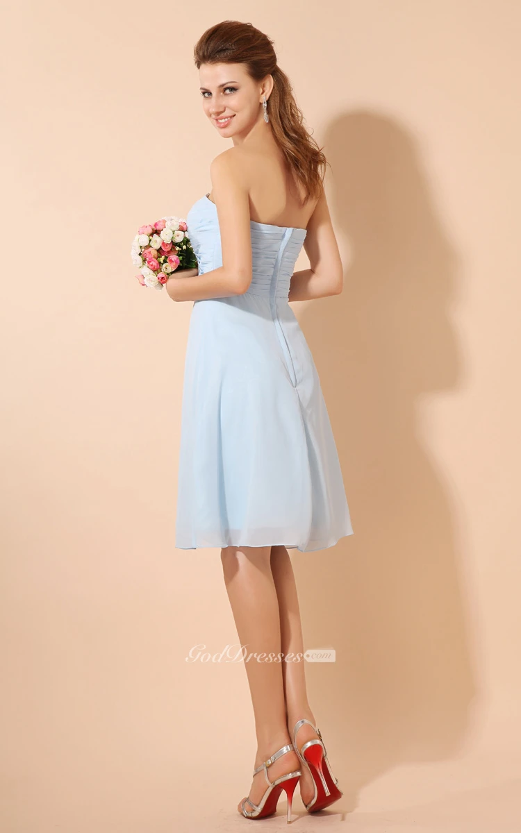 Rustic Knee-Length Chiffon Dress With Criss-Cross Ruching