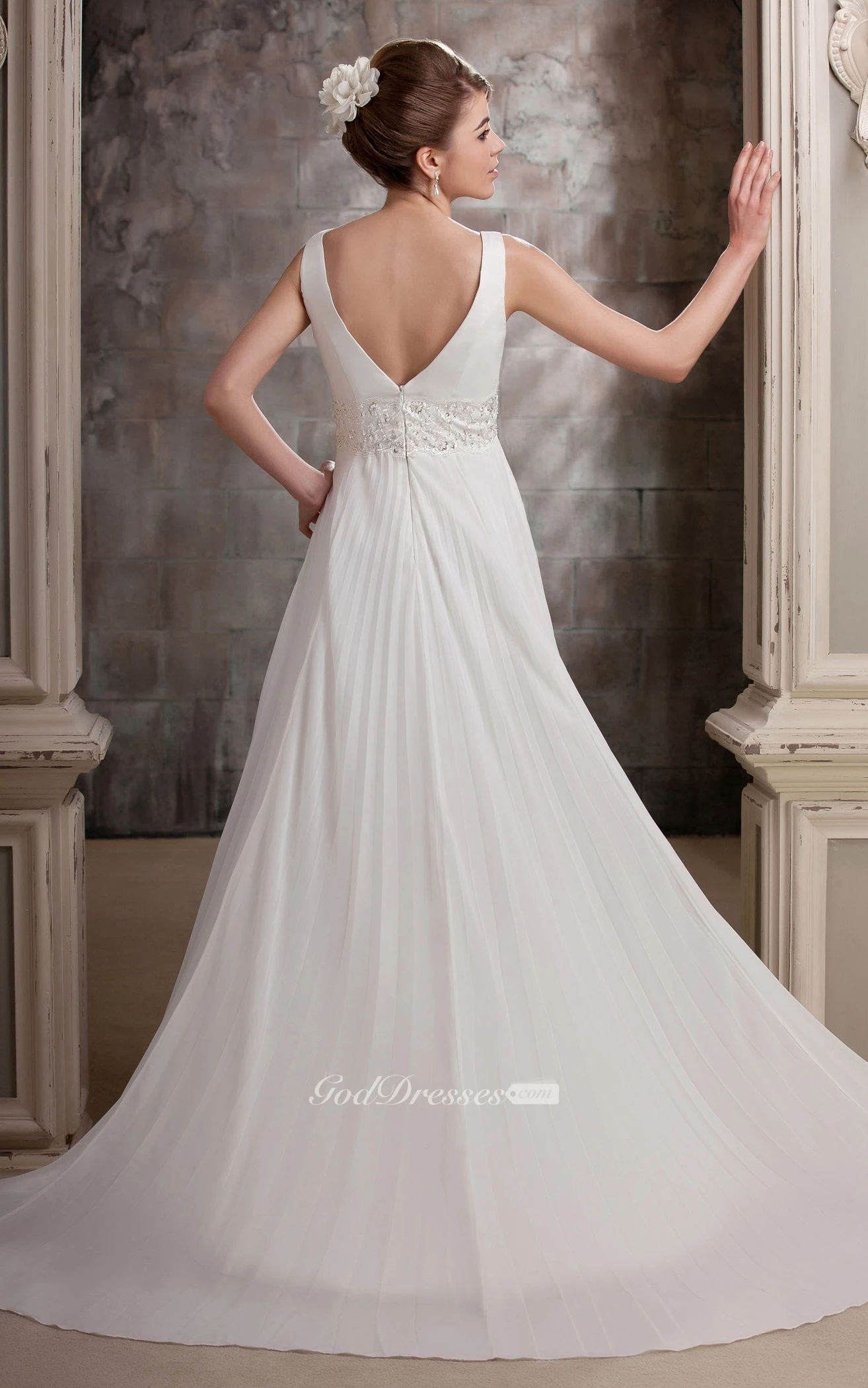 Rustic Sleeveless Chiffon Long Dress With Pleats and Gemmed Waist