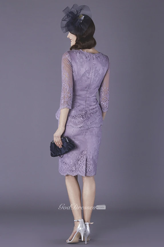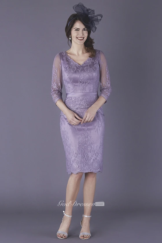 Satin 3/4 Illusion Sleeve Knee Length Pencil Mother Of The Bride Dress