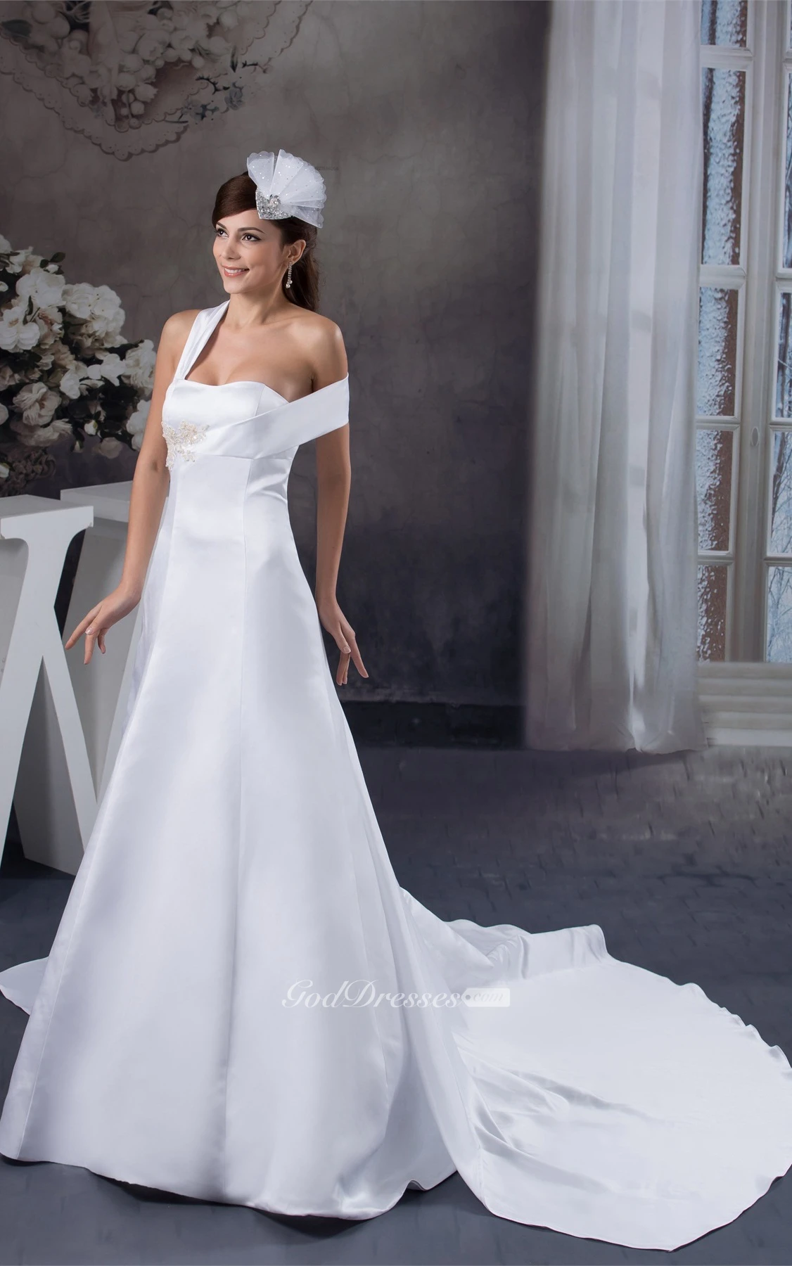 Satin A-Line Single-Strap Court Train and Gown With Appliques