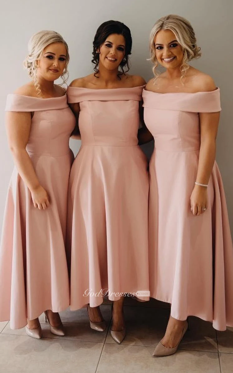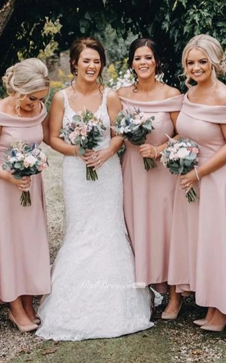 Satin Ankle-length A Line Sleeveless Casual Bridesmaid Dress with Pleats