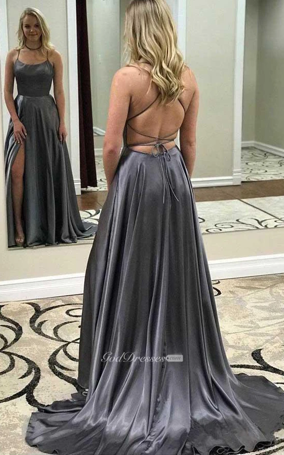 Satin Floor-length Brush Train A Line Sleeveless Simple Formal Dress