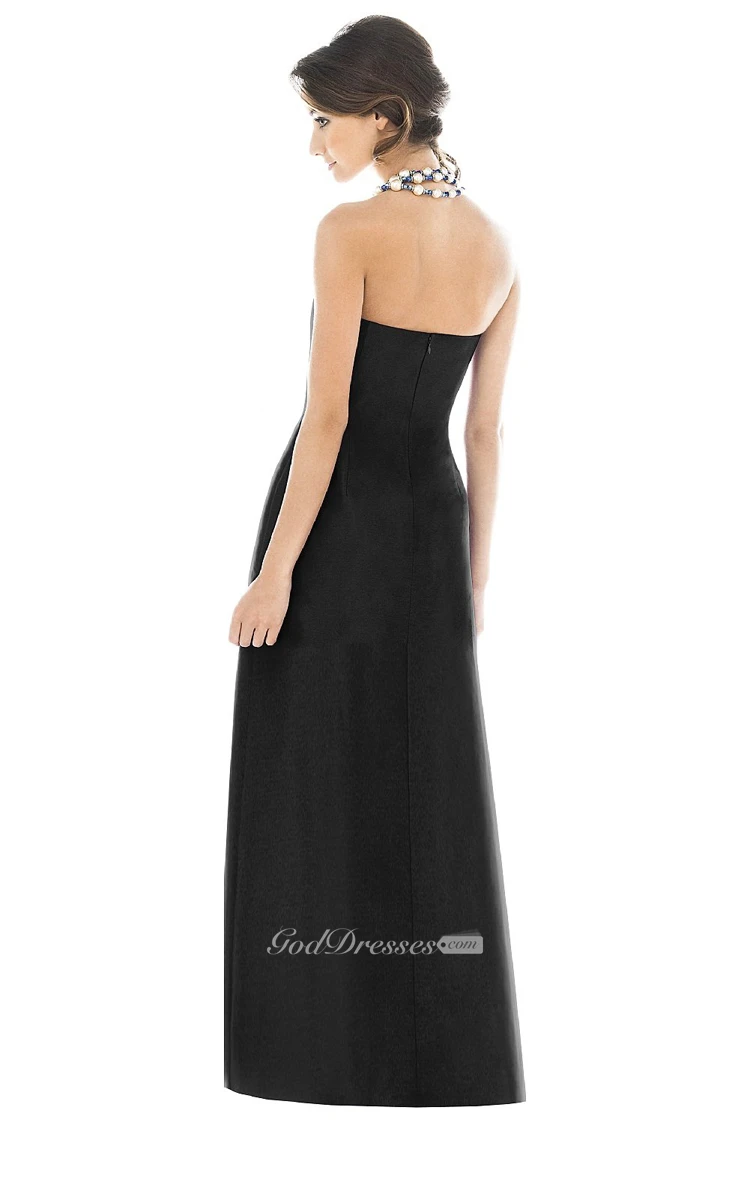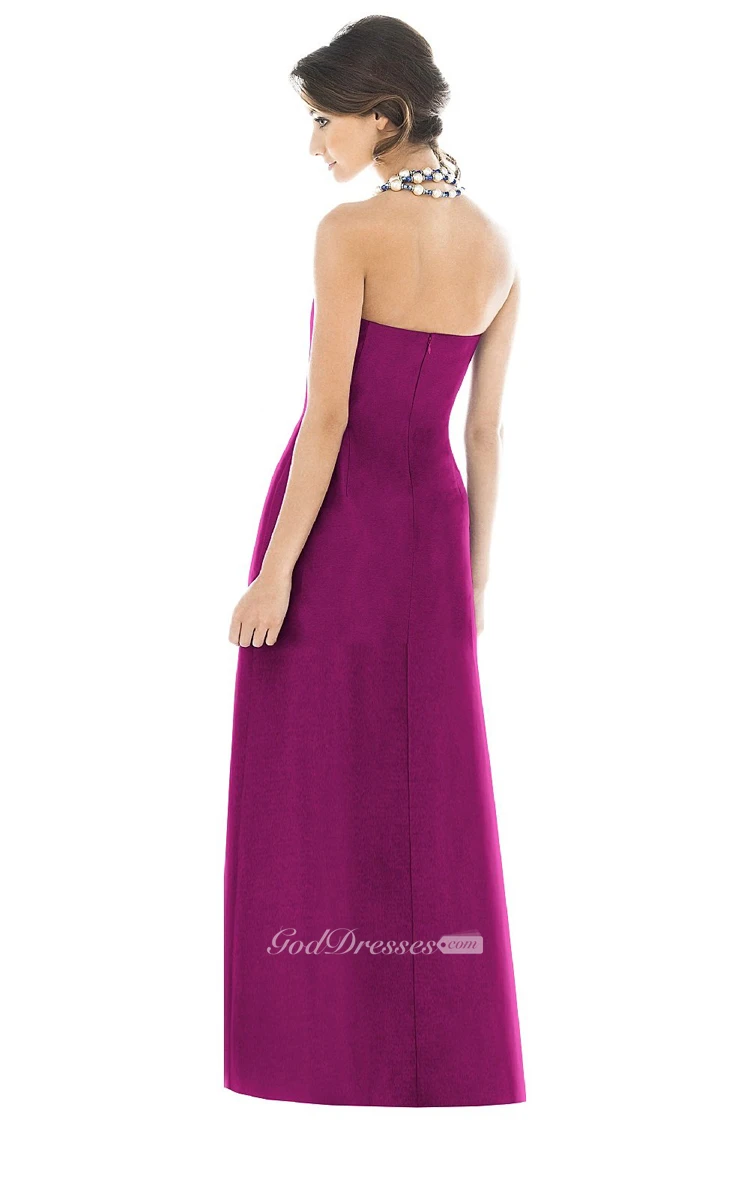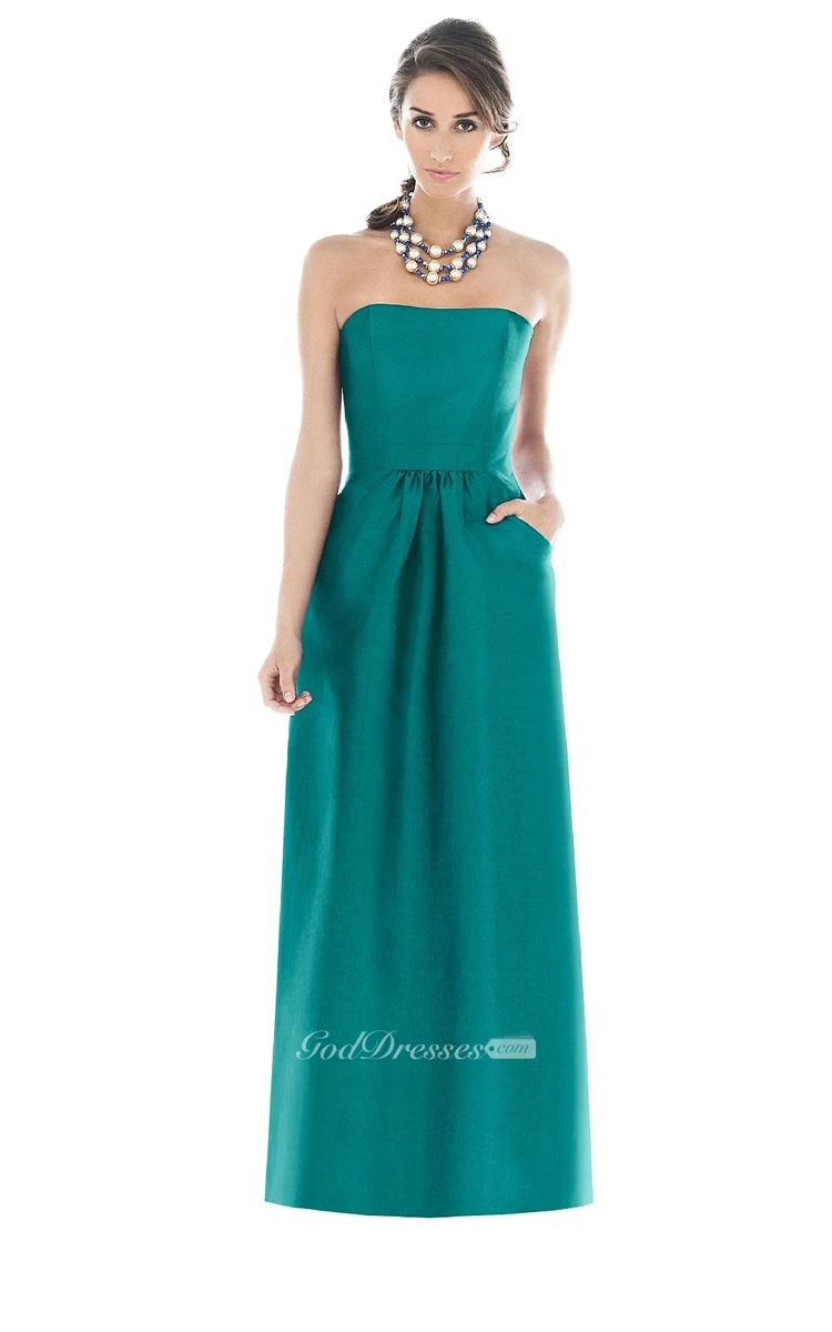 Satin Floor-Length Strapless Dress With Pockets