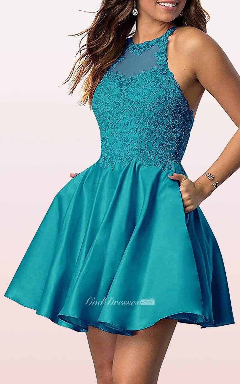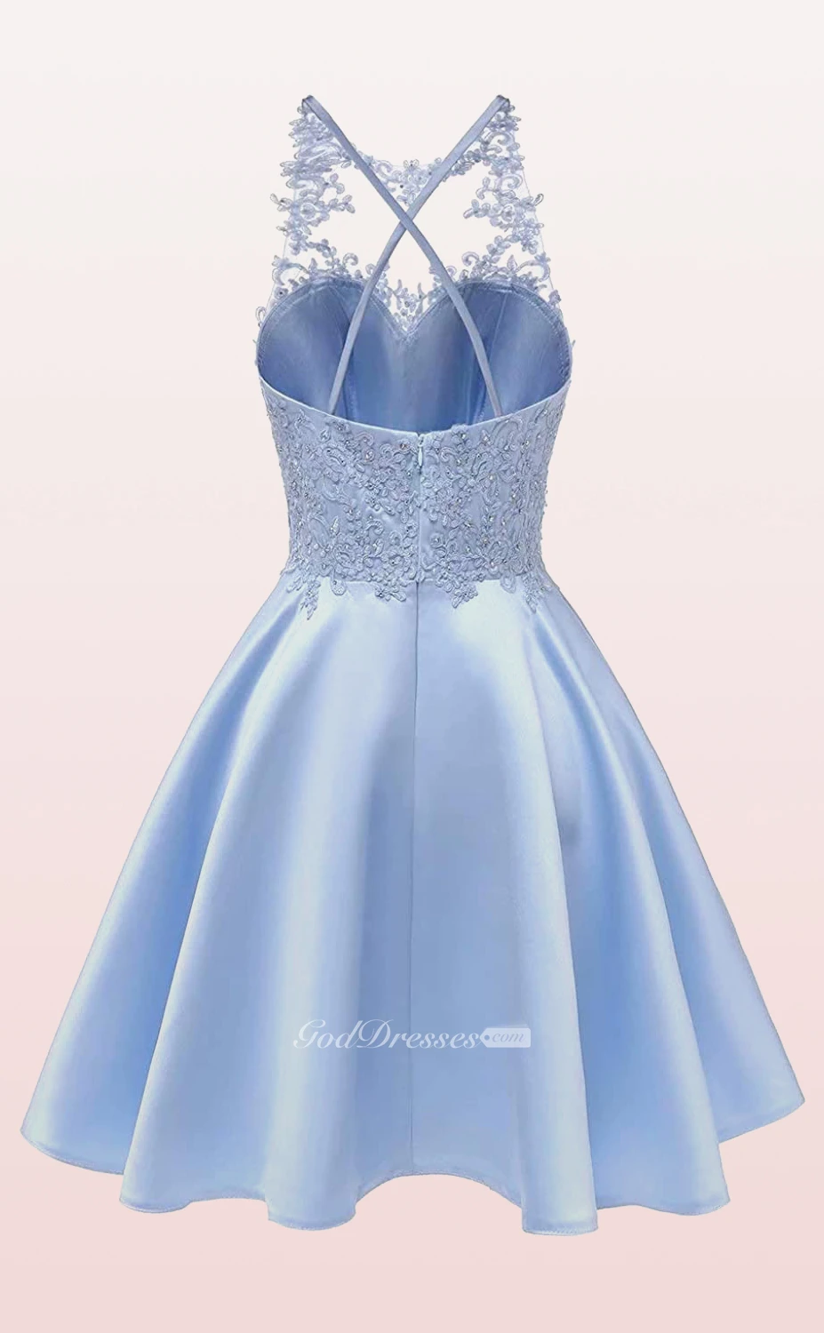 Satin Lace Mini A Line Sleeveless Adorable Homecoming Dress with Pleats