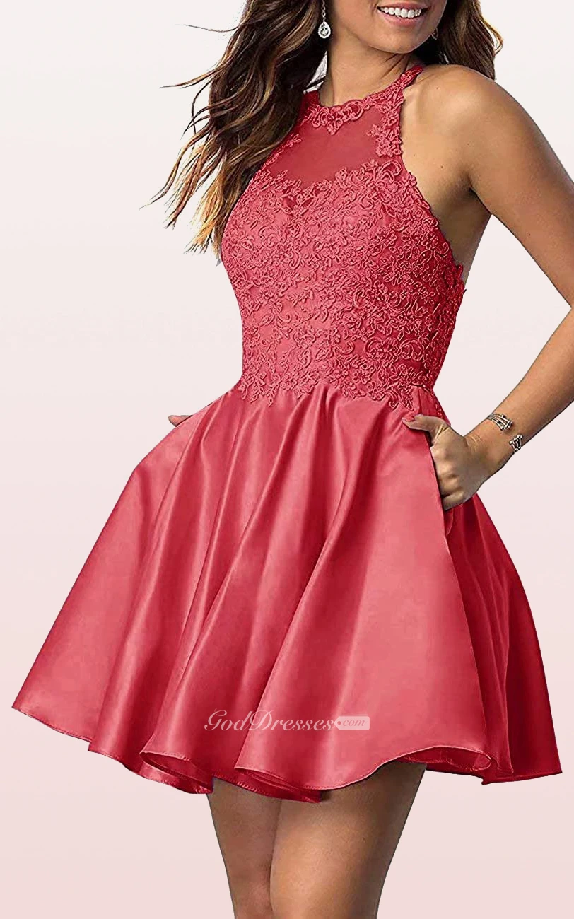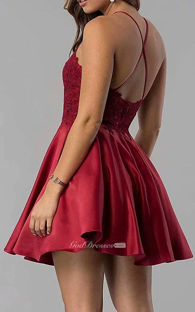Satin Lace Mini A Line Sleeveless Simple Homecoming Dress with Appliques
