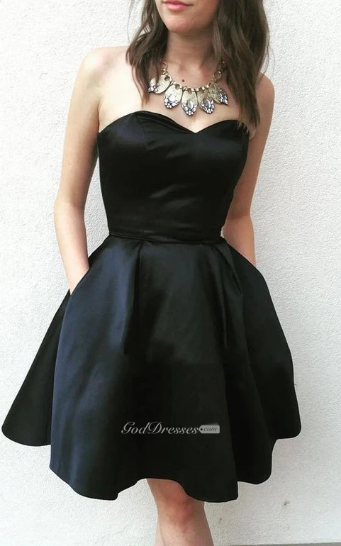 Satin Short A Line Sleeveless Casual Sexy Homecoming Dress with Pockets