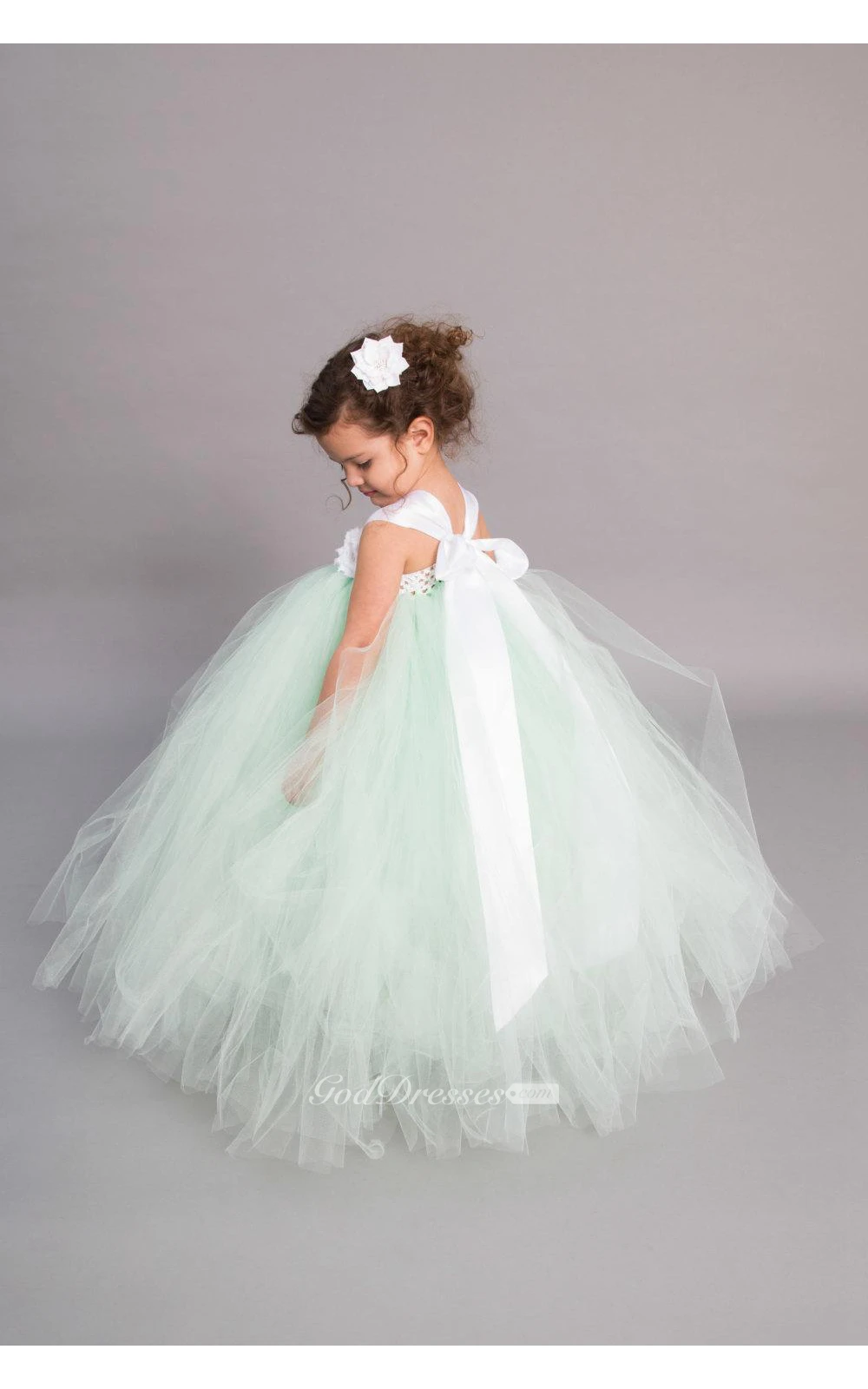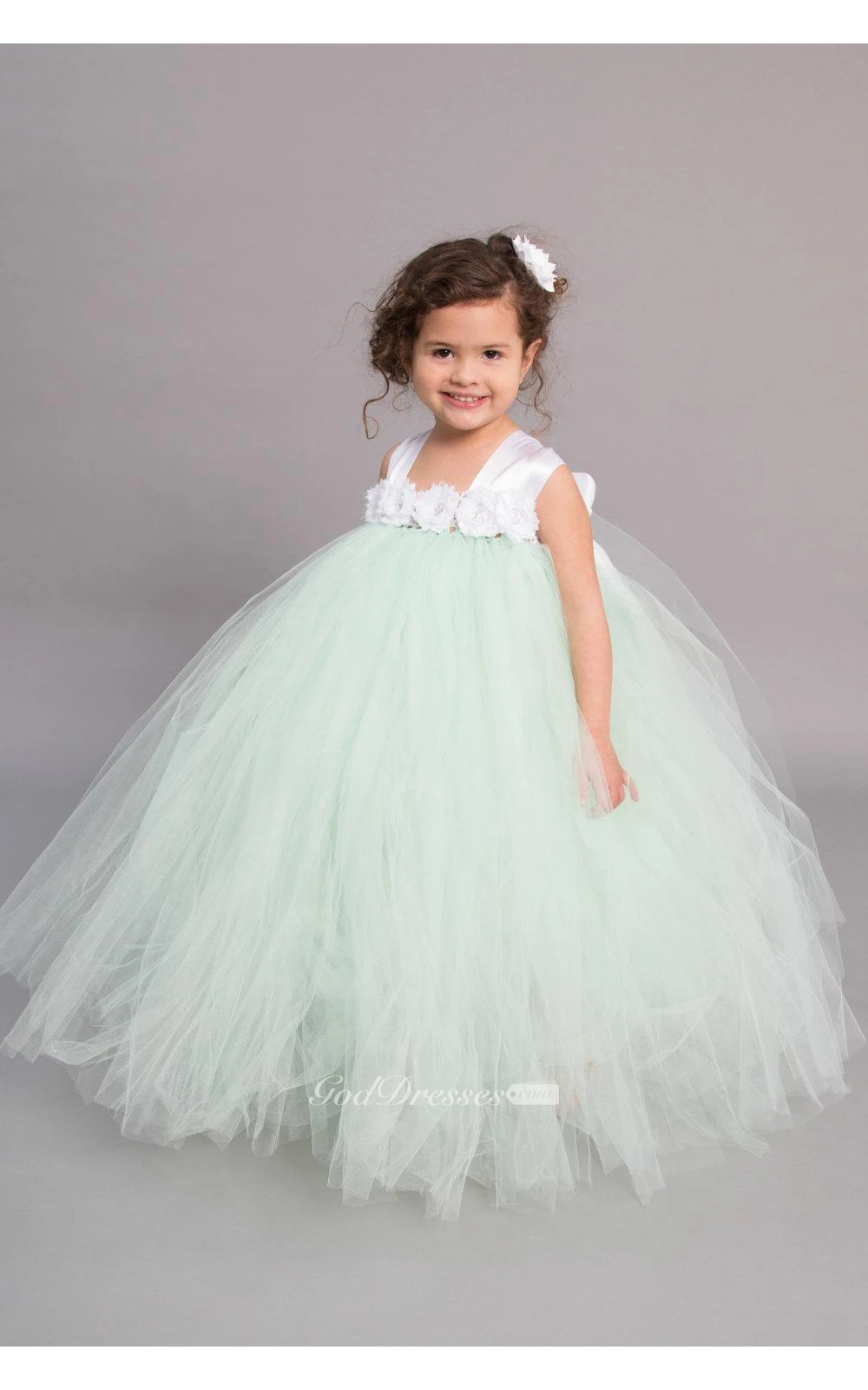 Satin Straps Empire Floral Top Tulle Ball Gown With Bow Sash