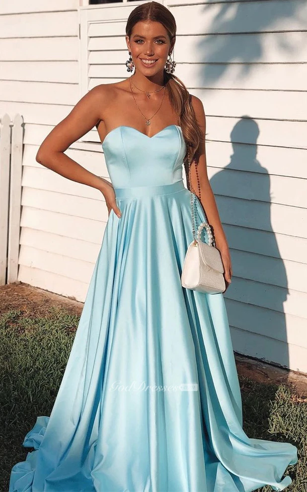 Satin Sweep Train A Line Sleeveless Informal Evening Dress with Ruffles
