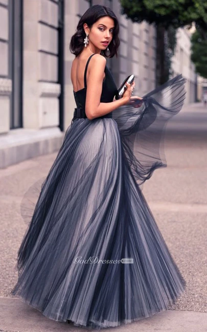 Satin Tulle Floor-length A Line Sleeveless Elegant Formal Dress with Bow