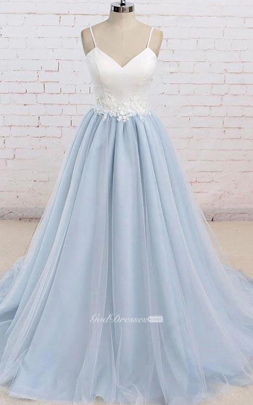 Satin Tulle Floor-length Brush Train A Line Sleeveless Casual Prom Dress with Appliques